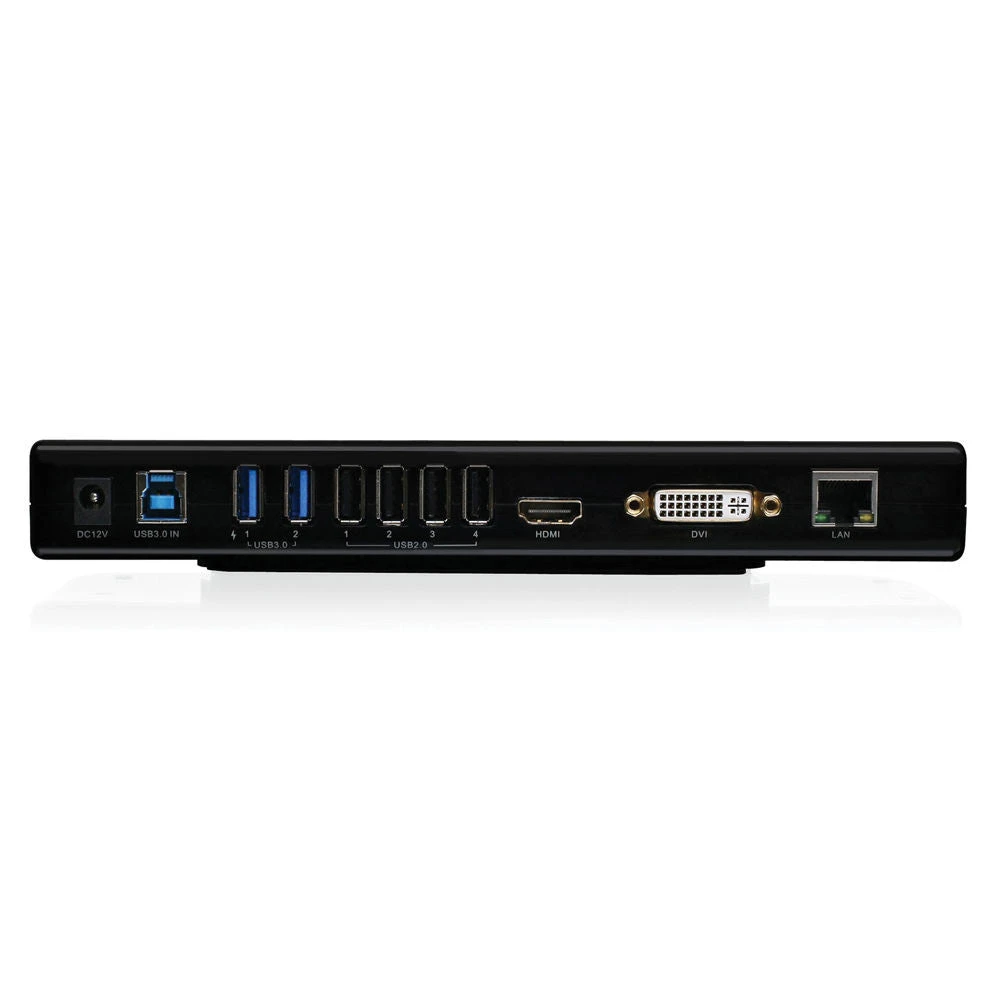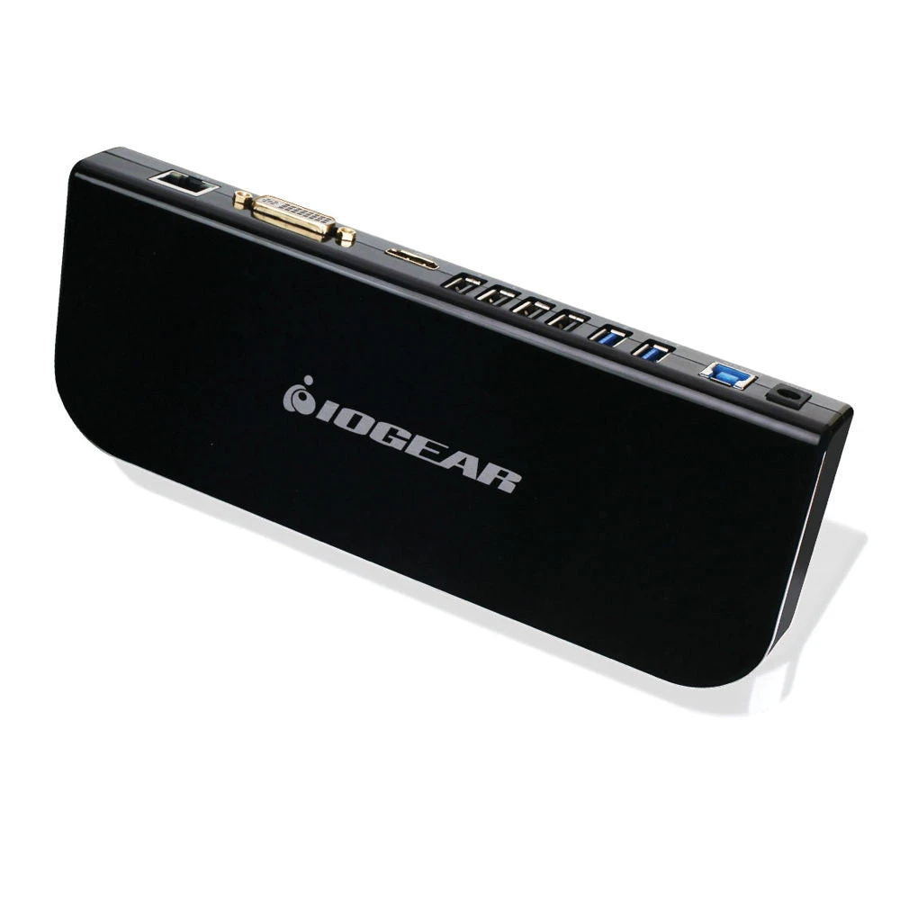 The USB 3.0 Universal Docking Station from IOGEAR can turn your laptop, Ultrabook, or a Windows 8 Pro tablet into a full-featured workstation. With DVI, HDMI, Gigabit Ethernet, six USB ports, and audio input/output jacks, the USB 3.0 Universal Docking Station connects you to all your peripherals with just a single USB 3.0 cable.