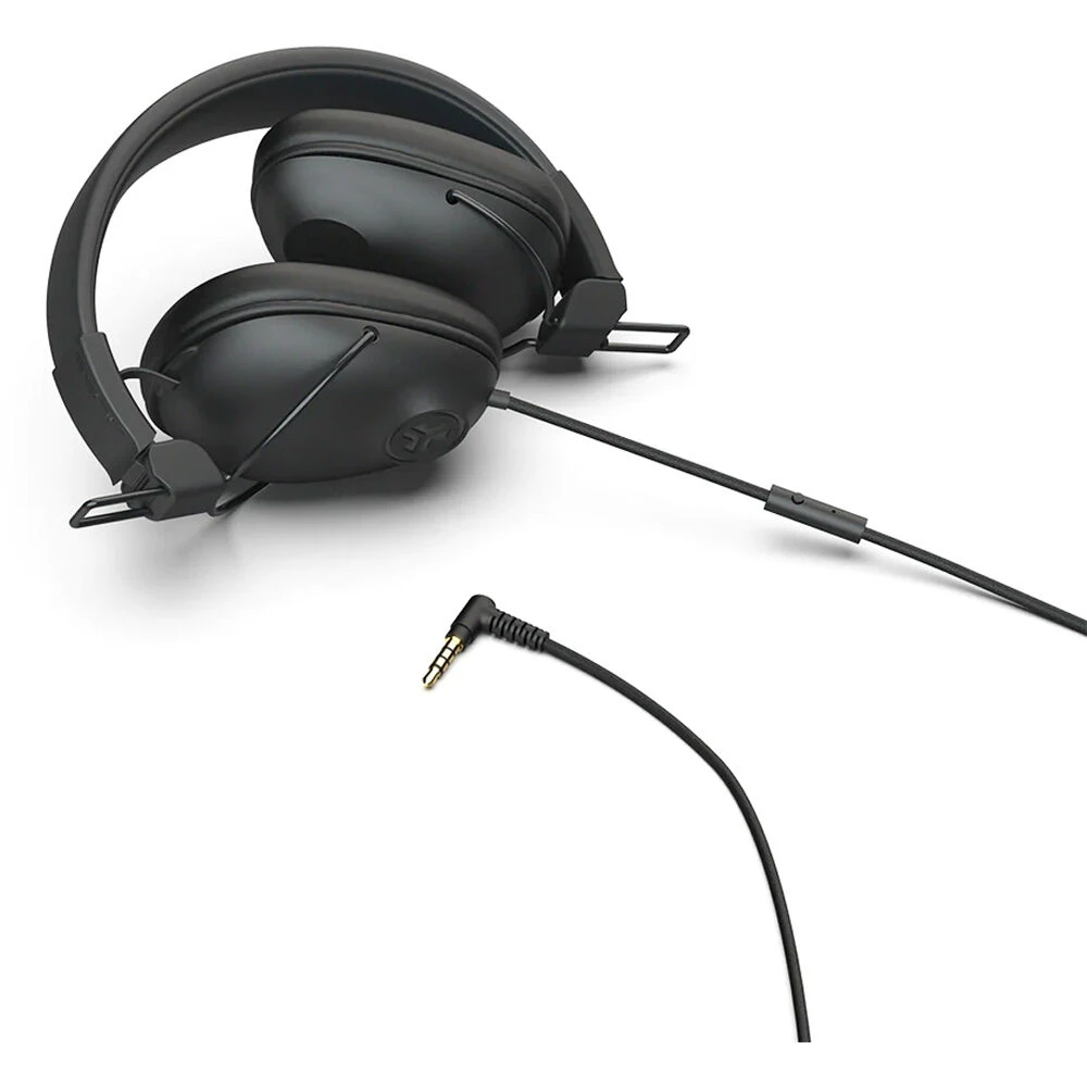 JLab, a pair of over-ear, wired headphones with Form Fit Cloud Foam earcups that are ergonomically shaped to the natural outline of your ear. These wired headphones sport a durable braided nylon cord with a convenient right-angled TRRS plug and a universal in-line microphone for taking calls on the go, as well as controlling tracks.