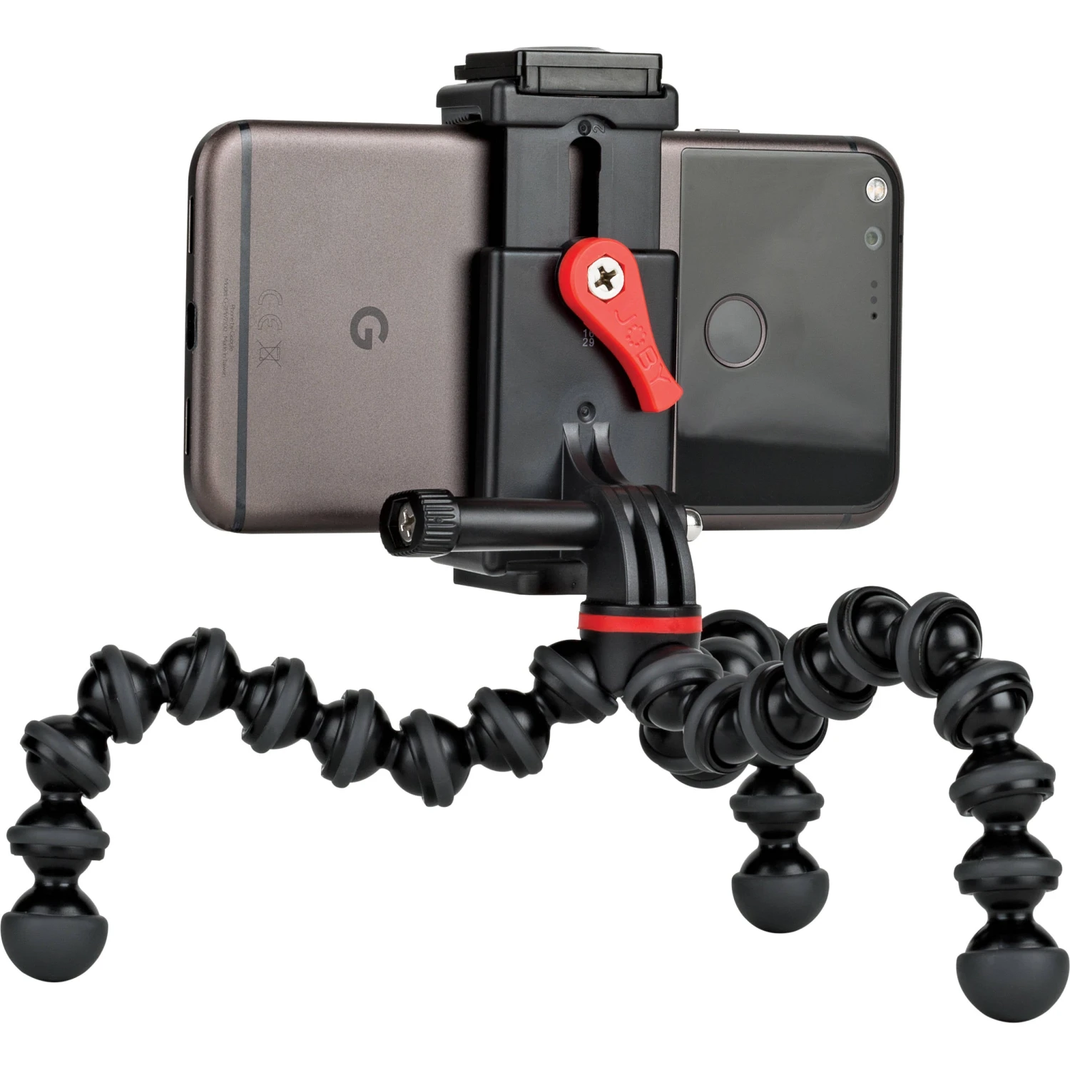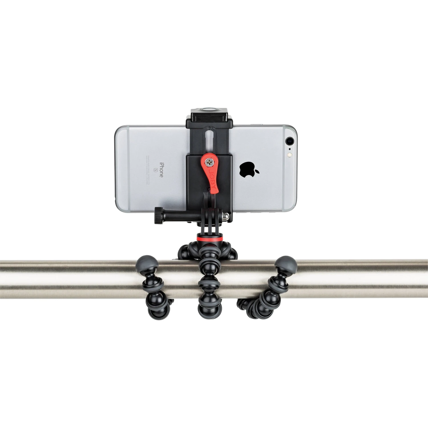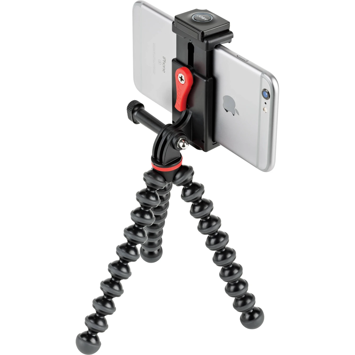 Supporting a multitude of different equipment weighing up to 1.1 lb, the GripTight GorillaPod Action Stand with Mount for Smartphones Kit from Joby consists of a stand with an integrated pin-joint mount that connects to a smartphone clamp mount. You can deploy the tripod without the smartphone mount for use with GoPro cameras and other action equipment, or attach the clamp to easily shoot selfies or panoramic shots with your phone. Additionally, a cold shoe adapter can be found at the top of the clamp for use with shoe-mounted gear such as microphones and LED lights.