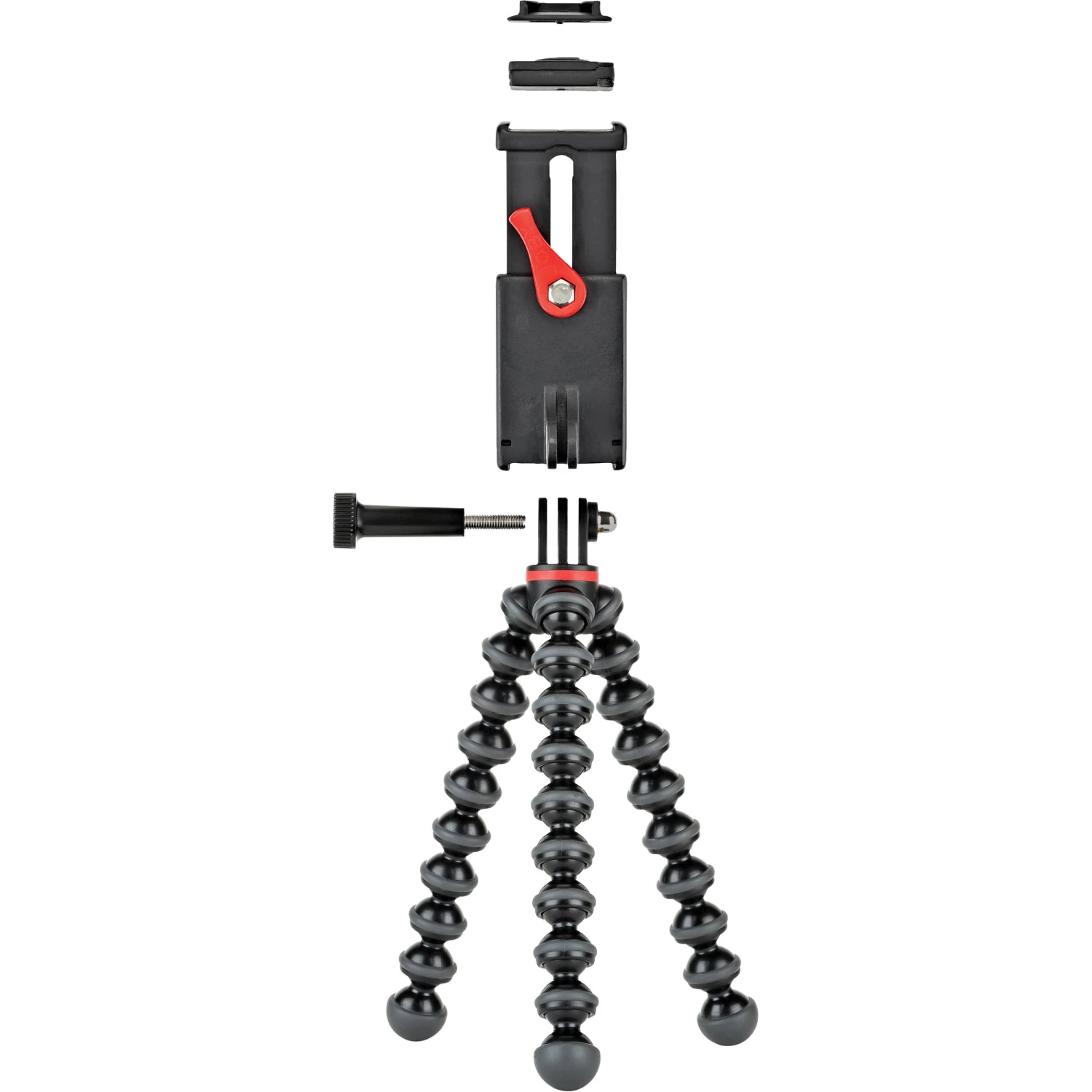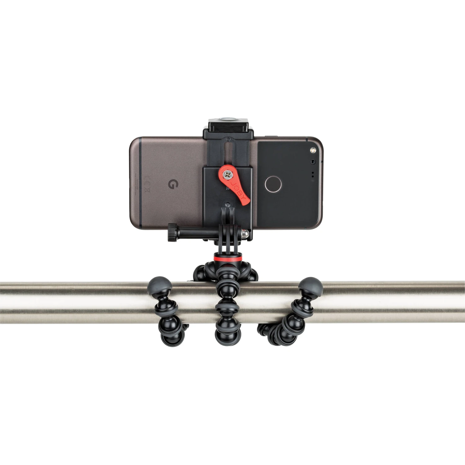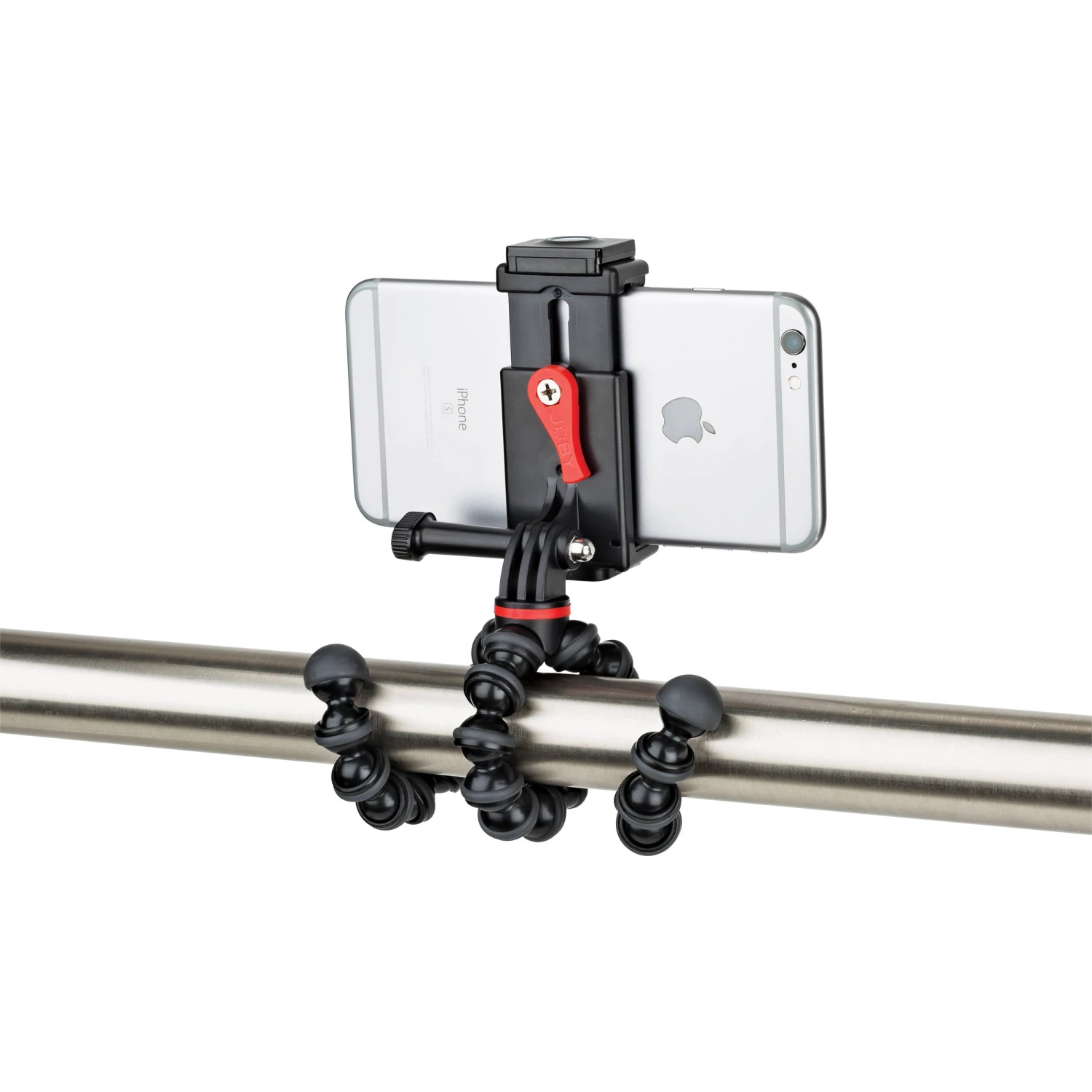 Supporting a multitude of different equipment weighing up to 1.1 lb, the GripTight GorillaPod Action Stand with Mount for Smartphones Kit from Joby consists of a stand with an integrated pin-joint mount that connects to a smartphone clamp mount. You can deploy the tripod without the smartphone mount for use with GoPro cameras and other action equipment, or attach the clamp to easily shoot selfies or panoramic shots with your phone. Additionally, a cold shoe adapter can be found at the top of the clamp for use with shoe-mounted gear such as microphones and LED lights.