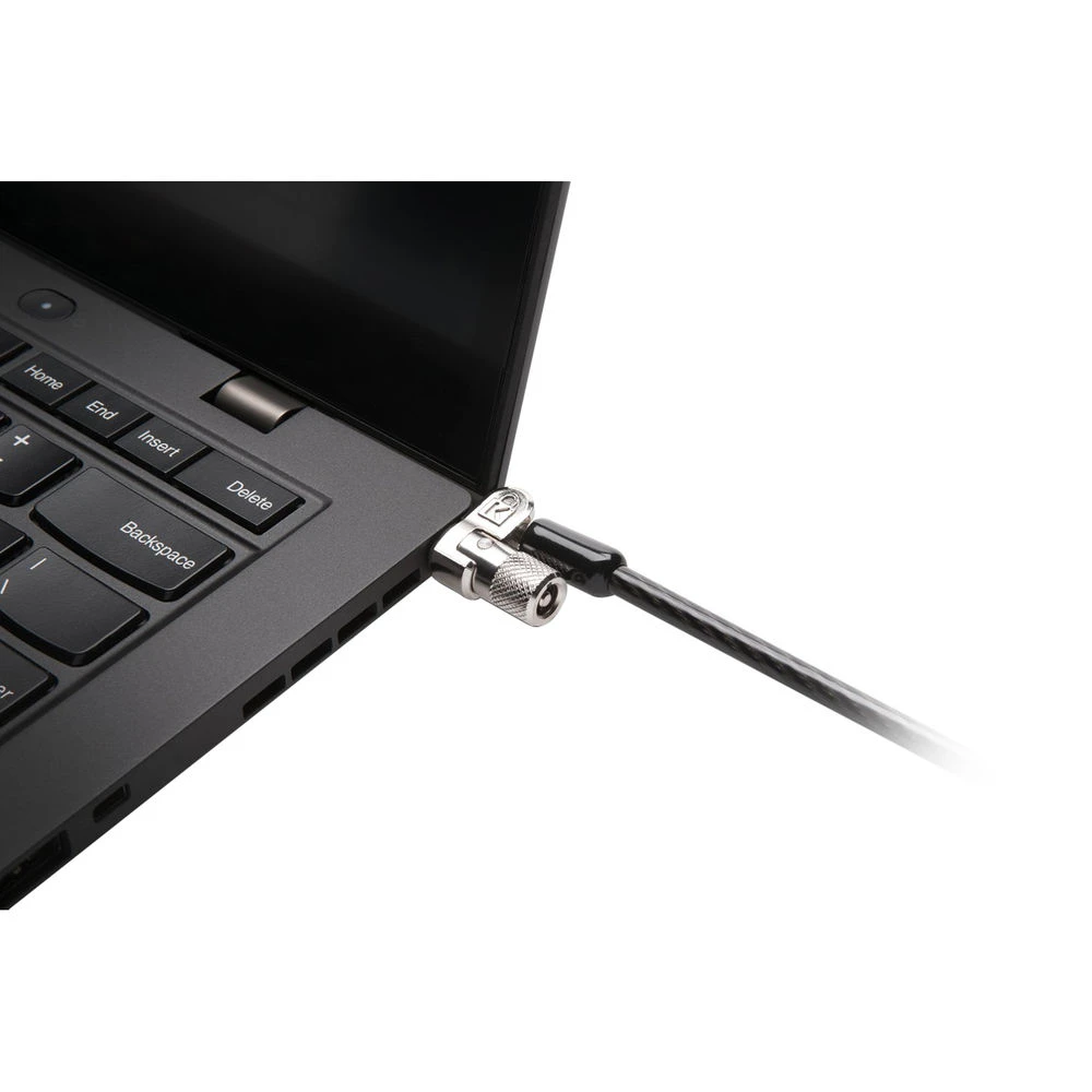 Ideal for securing a laptop or other compatible devices, the MicroSaver 2.0 Keyed Laptop Lock from Kensington features a 6′ carbon steel cable, a 10mm lock head, tamper-resistant Hidden Pin and T-Bar Locking technologies, and a hinge that can pivot and rotate. If the lock’s key is lost or stolen, an online Register & Retrieve program allows you to order a replacement.