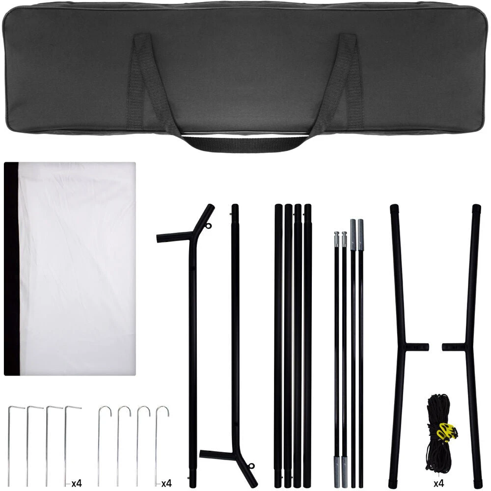 - Sets up quickly using the included portable stands