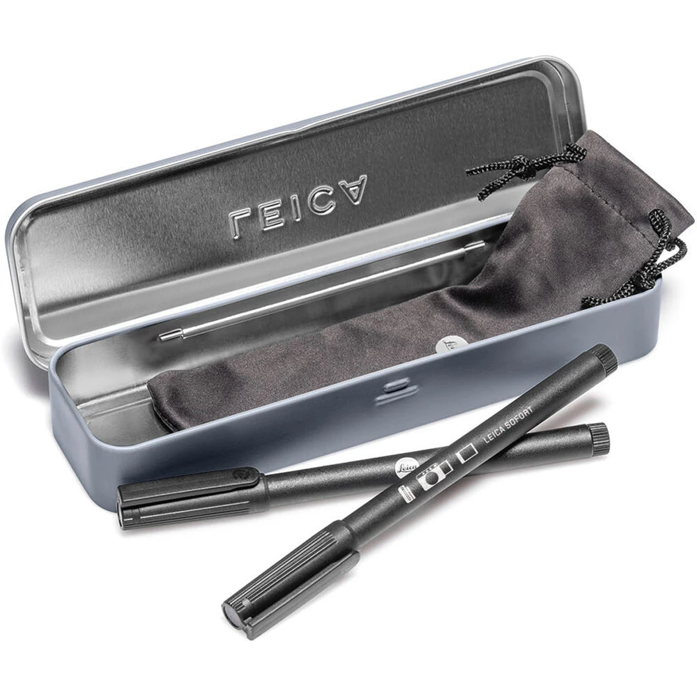 This gray SOFORT Metal Marker Box from Leica features an embossed Leica logo and includes two permanent markers with different line widths for personalizing your instant photos. A micro fleece bag is also included.