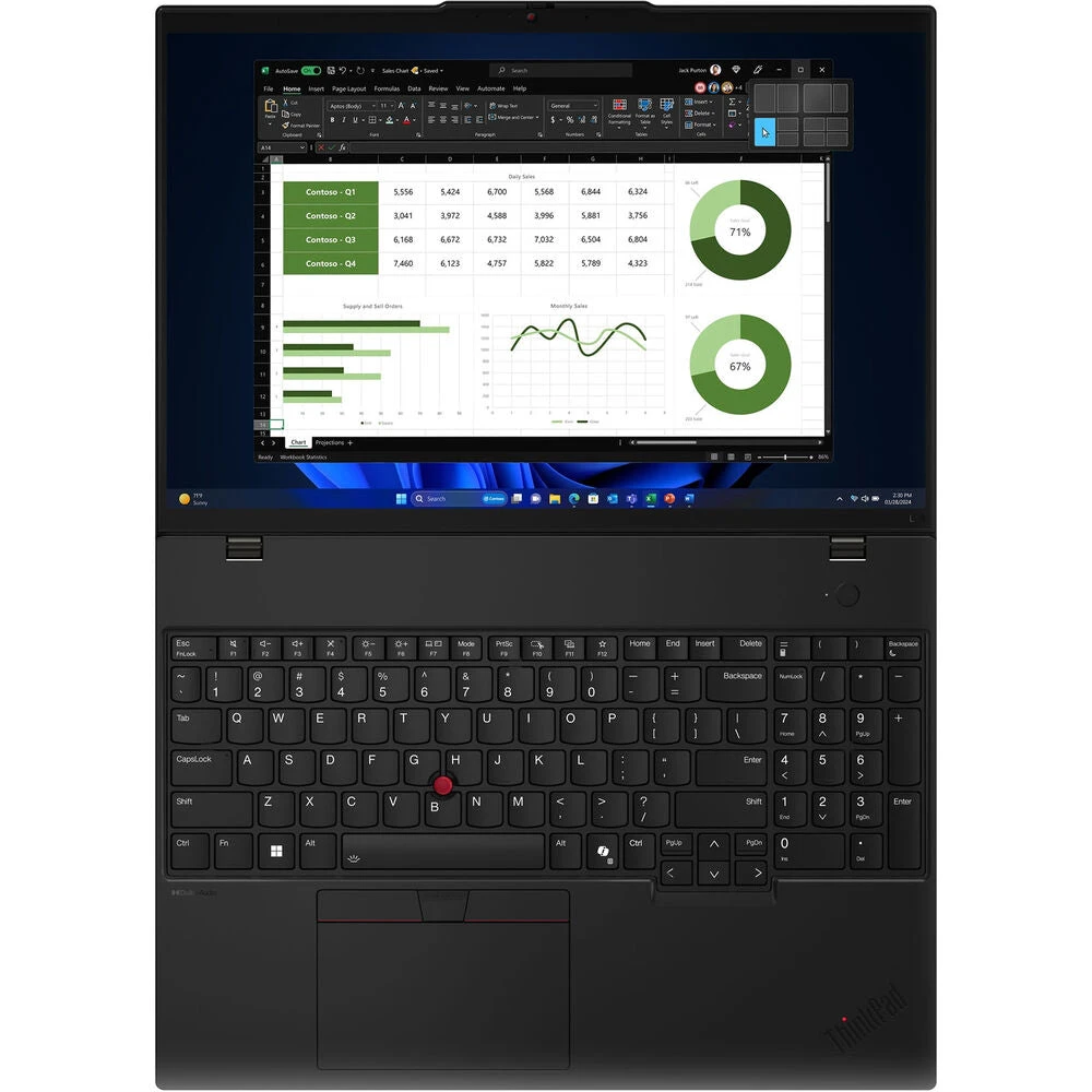 At the heart of the ThinkPad is an Intel Core Ultra 7 165U processor that boosts performance across your system by leveraging a series of P- and E-cores as well as two Low Power Efficiency cores to handle a variety of AI empowered tasks. Experience enhanced multitasking capabilities with 16GB of DDR5 5600 MHz RAM and a 512GB M.2 2280 PCIe 4.0 SSD, giving you faster render speeds and ample room to store your most essential files. Interact with your programs and media with the 16″ WUXGA 1920 x 1200 In-Plane Switching (IPS) touchscreen display backed by integrated Intel ARC graphics, providing you with a clear and smooth picture quality. Connect a wide range of peripherals to the ThinkPad with one Thunderbolt 4 port, which offers up to 40 Gb/s data transfer speeds, Power Delivery 3.0, and DisplayPort 1.4a technologies to help support resource-demanding devices such as storage arrays, displays, and more. You also get an array of ports including one USB-A 2.0, two USB-A 3.2 Gen 1, and a single USB-C 3.2 Gen 2×2 port, allowing you to plug in a wide range of devices with ease. You can also use Bluetooth 5.3 technology for a cable-free experience, allowing you to use wireless devices such as headsets, controllers, and more. Connect to wireless networks with built-in Wi-Fi 6E (802.11ax) technology, giving you quick access to your online storage, cloud network, and streaming media.