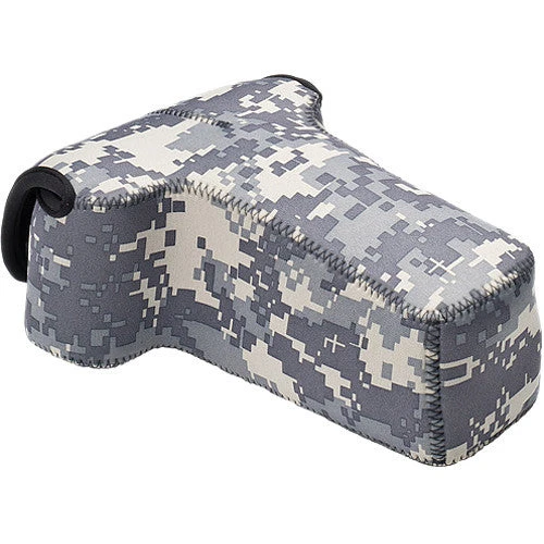 The LensCoat BodyBag Telephoto Camera Case , in digital camo finish, is designed to fit a consumer/prosumer camera body with a 6.75″ attached lens, and without the optional body grip. It protects your camera and lens from incidental bumps and “dings” that can occur�in normal everyday use or photo shoots. The soft neoprene covering is shock-absorbent and provides a way to keep dust, dirt, and other contaminants from harming your investment. The BodyBag Telephoto case comes with a removable front element protection disc made from a rigid plastic that offers additional abrasion protection to the front of your optic. The touch-fastened closure provides quick access to your gear and is easy to use. The included retaining strap easily attaches to your camera’s strap, so you’ll never have to worry about losing the cover.