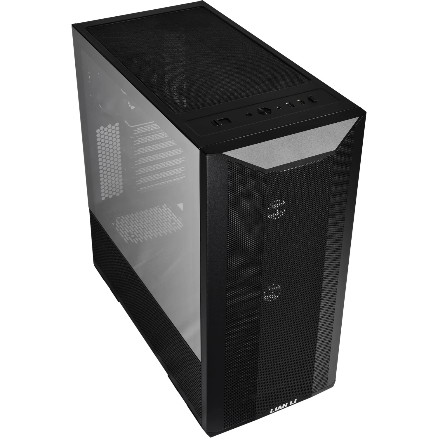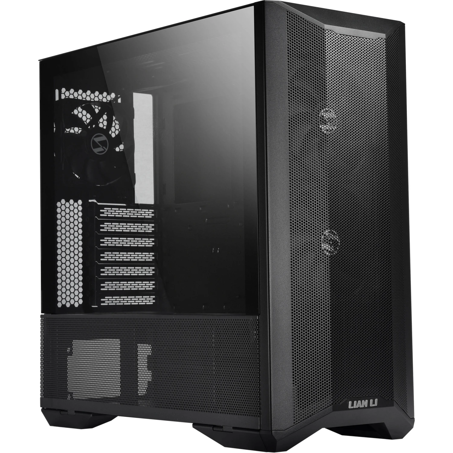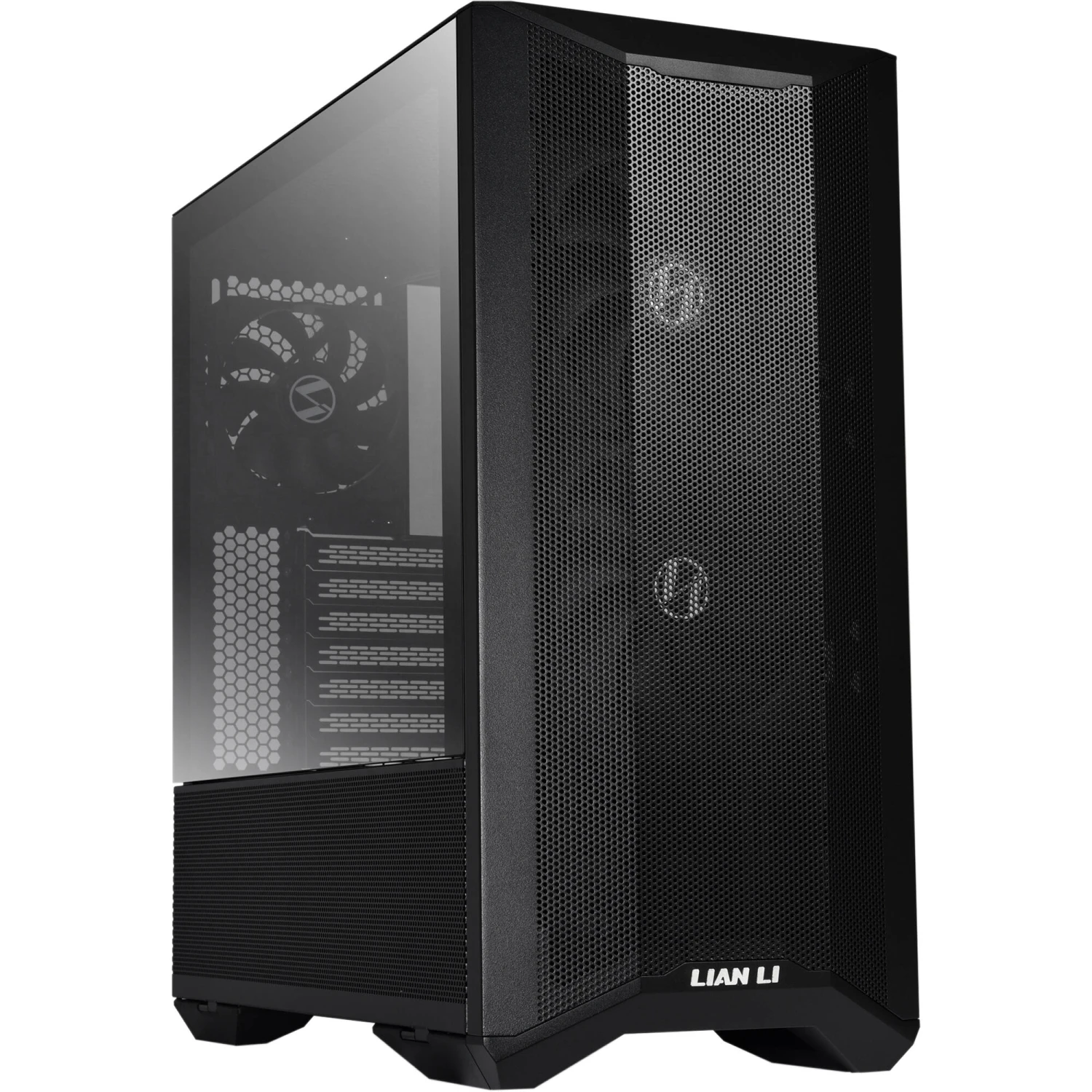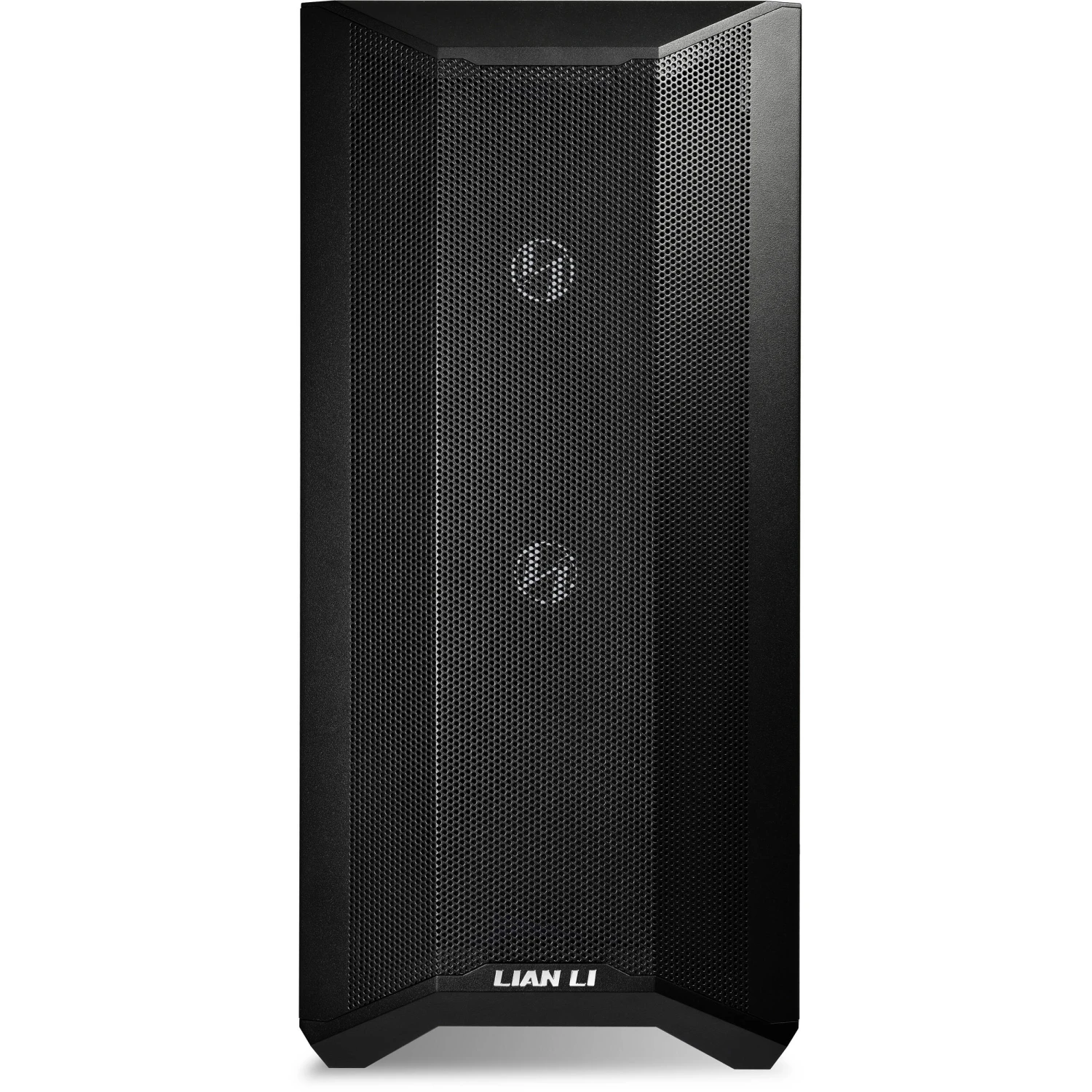 Enhance your computer build with style and efficiency with the LANCOOL II Mesh Performance Mid-Tower Case from Lian Li. Built to fully optimize airflow for high-performance systems, this black steel mid-tower case features a ventilated mesh grille front panel alongside honeycomb vents and a mesh bottom-left shroud panel. They complement the two included 140mm 600 to 1200 rpm front PWM fans and the rear 120mm 600 to 1500 rpm ran to help maintain optimal system temperatures. The removable bracket makes it easy to install up to three 120 or two 140mm fans, or a 360mm radiator on the front panel. It can also be positioned in four different configurations to optimize cooling for your build. Up to two 120 or 140mm fans can be installed on the top for maximum airflow, or you can mount a 240mm radiator for liquid cooling. You can also install up to two 120mm fans on an internal panel for dedicated PSU cooling. The case includes a four-mode fan controller on the top panel, which allows you to manually control fan speeds to suit your usage.