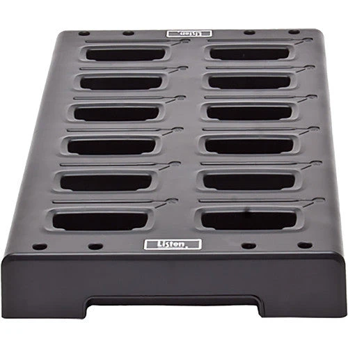 The black LA-381-01 Intelligent 12-Unit Charging Tray from Listen Technologies is compatible with all of the company’s iDSP products, and is designed for streamlining the collection, care, charging, and dispensing of your iDSP units. The LA-381-01 features tension locking charging slots for proper charging contact and security. Each slot can also accommodate additional items, such as an ID card, while the receiver is being used. The charging tray can be mounted to a wall, drawer, rack, or table top for easily dispensing the iDSP devices.
