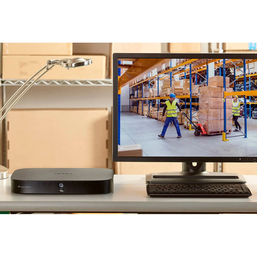 This DVR supports two-way audio. An HDMI and a VGA port enable video output to an external monitor at up to 4K UHD resolution (HDMI output only). Lorex Home and Lorex Cloud provides remote management via your iOS or Android device and your Windows or macOS computers.