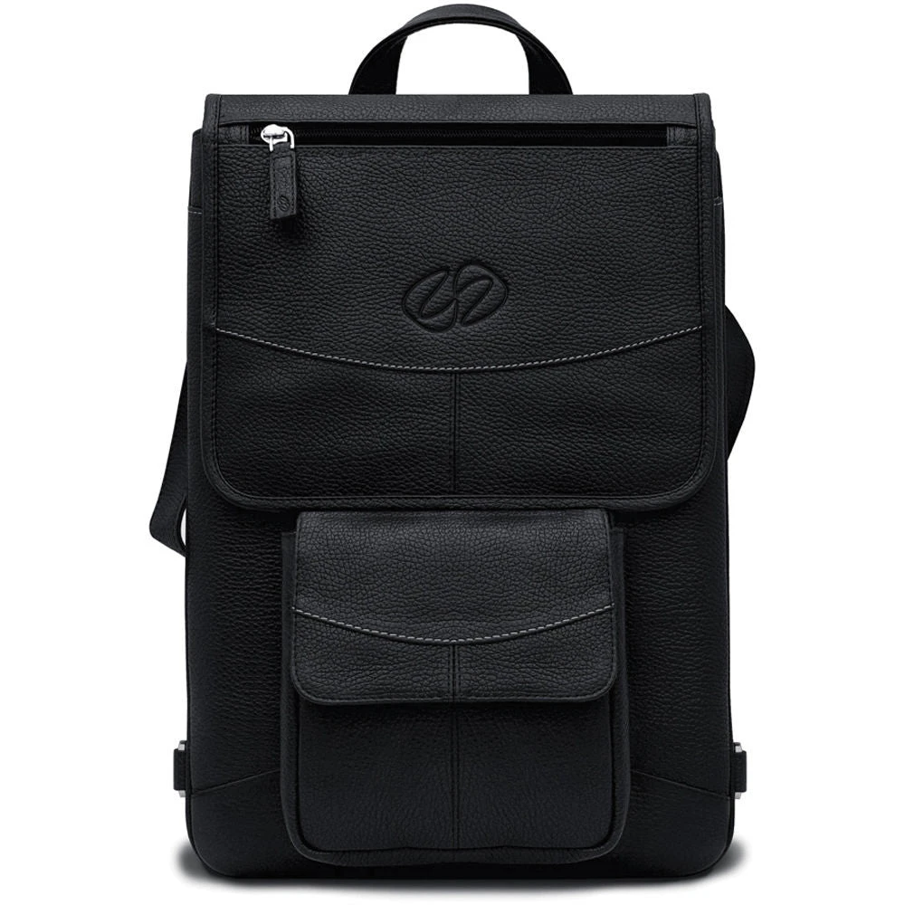 Stylish and sturdy, the black� Premium Leather Flight Case�with Backpack Straps and Extra Large Pouch �from MacCase is a vertically oriented case designed to carry any 11″, 13″ or 15″ laptops as well as a tablet and accessories. It is made from a 100% leather exterior with a fully padded interior and it’s lined with soft, interior fabric.�A removable, internal padded divider panel allows for a customized arrangement of your gear. A�stainless steel finished metal clasp provides secure closure and c hrome steel feet protect its bottom .�The case has a large front and rear flat pockets and a front flap zippered pocket for quick reach items. A removable padded shoulder strap is included, but it is otherwise carried by its riveted leather top handle. Unlike the Premium Leather Flight Case, this model includes backpack straps for further carry options and an extra large removable pouch, which provides 50% more storage capability.