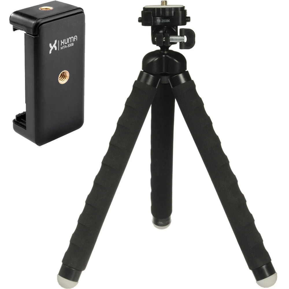 Mount your smartphone to a tripod with bendable legs to prevent shaking while shooting photos or videos using the Bendable Tabletop Tripod with Mount , which is a B&H Kit . Fit any smartphone from 2.4 to 3.25″ wide into the included mount, which attaches to the included black tabletop tripod. The tripod’s flexible legs can bend 360° to wrap around a fence, tree branch, chair leg, or anything else stable and small enough to wrap the legs around. Additionally, the smartphone mount is compatible with most separately sold protective cases.