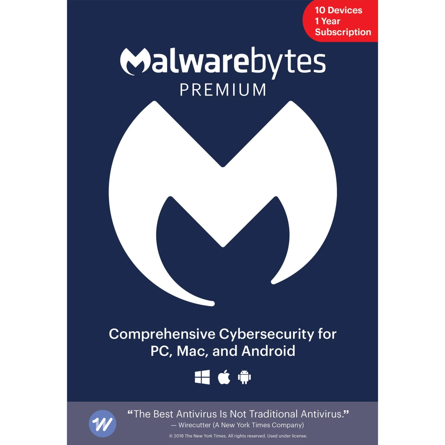 - Malwarebytes Premium Cybersecurity Software (Download, 10-Device License, 1-Year)