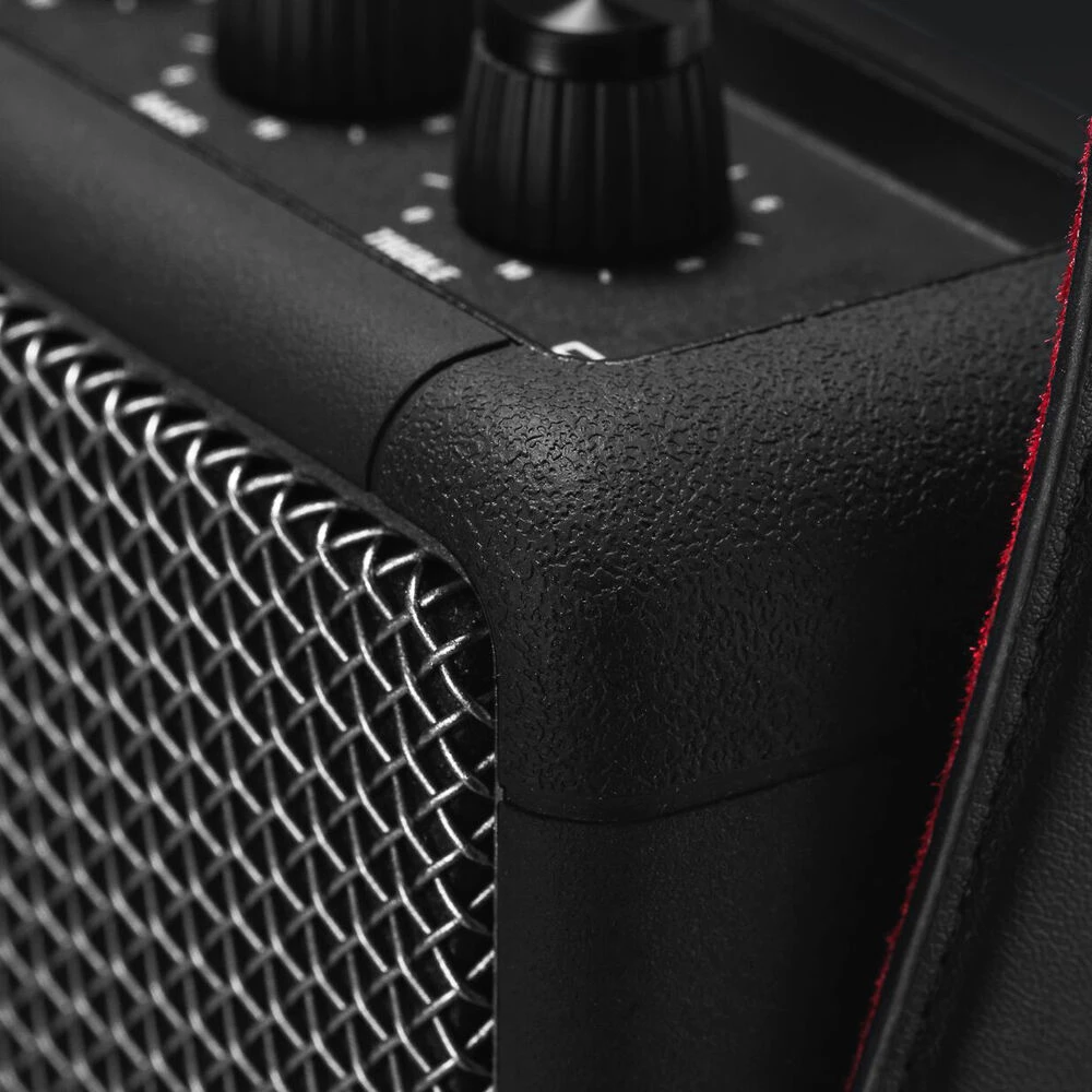 Using Marshall’s True Stereophonic to pump out immersive multidirectional sound from a rugged amp-inspired frame, the Marshall Stockwell II Portable Bluetooth Speaker is a cool-looking option for enjoying your music on the go. To get that rich and enveloping sound from such a small speaker, Marshall equipped the Stockwell II with one 10W and two 5W Class-D amplifiers. They power a woofer and pair of tweeters, which are contained within a bass-reflex enclosure designed to look like one of Marshall’s iconic amps, right down to the steel mesh grill emblazoned with the famous Marshall logo. The design aesthetic is continued into the carrying handle, which is made to look and feel like a guitar strap.
