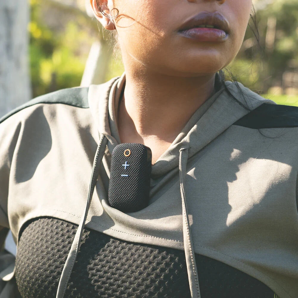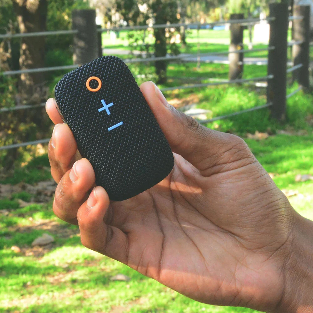 Enjoy your run or round of golf without cumbersome and isolating headphones by using the goSPKR Wearable Bluetooth Speakerphone from MEE Audio. This black-colored ultra-compact device incorporates a magnetic clip for attaching it to your shirt, jacket, or golf cart. The built-in speaker is designed to provide improved quality when compared to a typical built-in phone speaker, so you can enjoy your favorite music while remaining aware of your surroundings. The little device also manages to pack in a microphone, so you can leave your phone in your pocket and use the goSPKR as a speakerphone, or interact with your voice’s digital assistant using voice commands. Whatever your outdoor adventure, the goSPKR can handle the sweat and splashes with IPX5-rated water resistance.