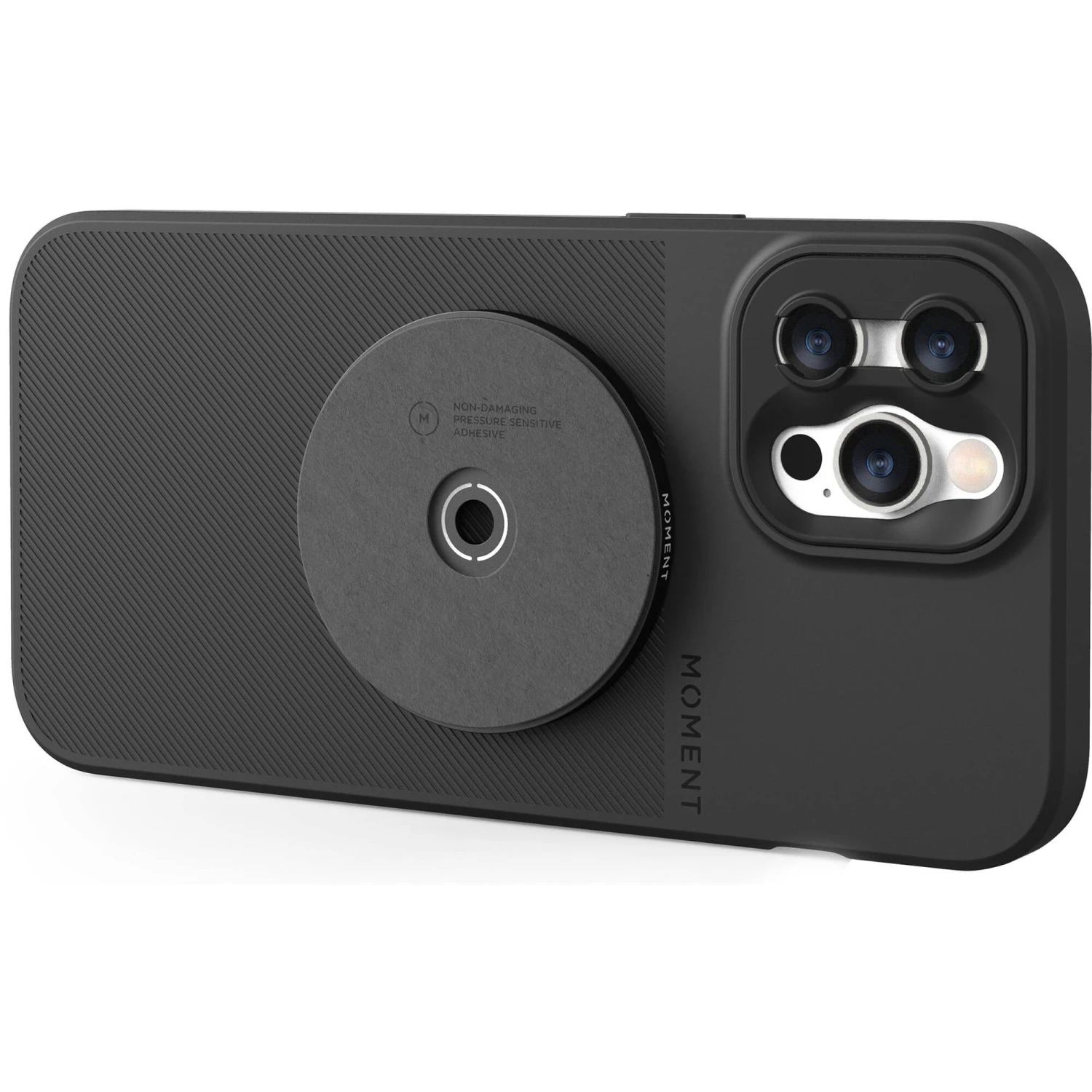 Mount your iPhone 12 to a wall or flat surface with this iPhone 12 Wall Mount with MagSafe from Moment. The thin, 2.25″ circular mount can be affixed via the included 3M adhesive backing, or with an (optional) screw through the countersunk center hole. Once attached, the disc’s strong (M)Force magnet array lets you quickly attach any model of iPhone 12, even if it’s in a MagSafe-compatible case. Don’t worry if you don’t have a case, the padded surface is made to prevent scratches. Use it for hands-free video watching or news reading, keep it near your bedside as an alarm clock, or near your desk to view incoming notifications.