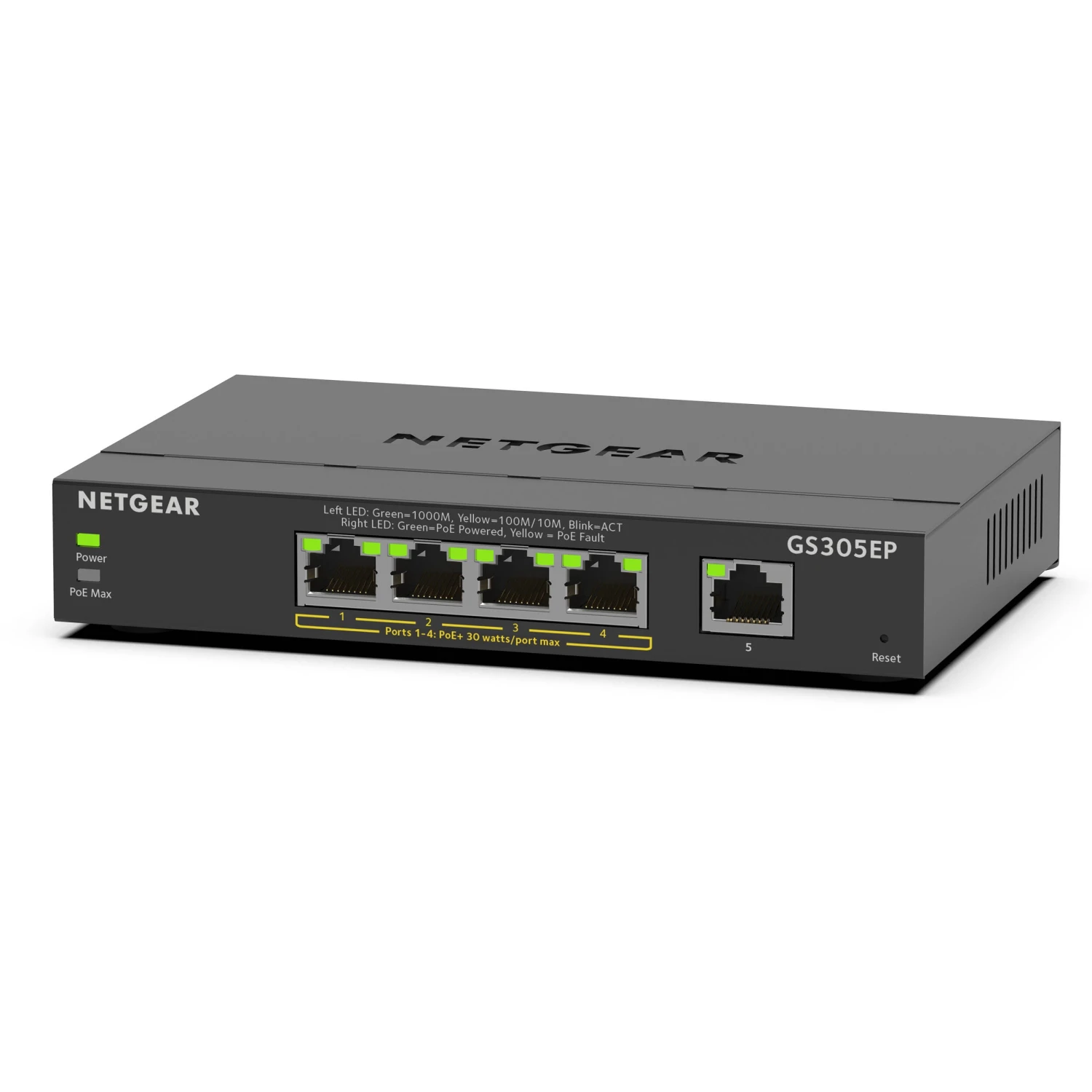 - Netgear GS305EP 5-Port Gigabit PoE+ Compliant Managed Switch