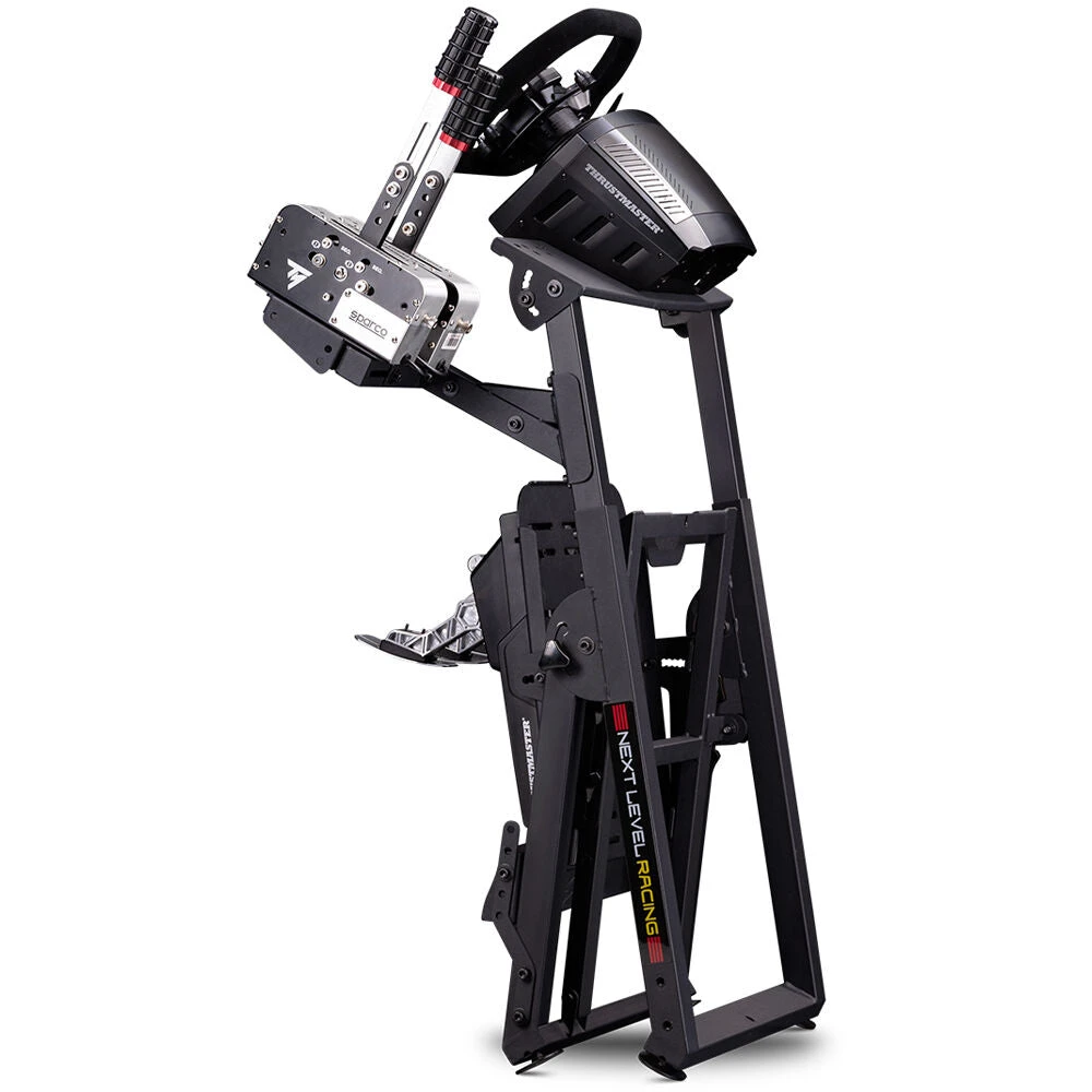 Create your own racing setup with the Next Level Racing Wheel Stand 2.0. NLR made various improvements to the Wheel Stand 2.0 from its predecessor, the first-generation Wheel Stand. By utilizing a robotic manufacturing process of laser cutting and welding, the Wheel Stand 2.0 provides improved functionality and strength with a stronger and more adjustable wheel, pedal, and shifter/handbrake support. The Wheel Stand 2.0 also offers a wider range of compatibility for sim racing accessories and peripherals from major brands. It even has pre-drilled holes for Logitech, Thrustmaster, and Fanatec racing wheels. With the addition of a shifter and handbrake support as well as a gaming chair cradle, you’ll be able to have a more immersive sim racing experience, even more so when upgraded to a full cockpit with the addition of the Next Level Racing GTSeat Add-on (sold separately). It is even motion compatible. The great thing about the Wheel Stand 2.0 is that you can fold it up and store it without it taking up too much space.