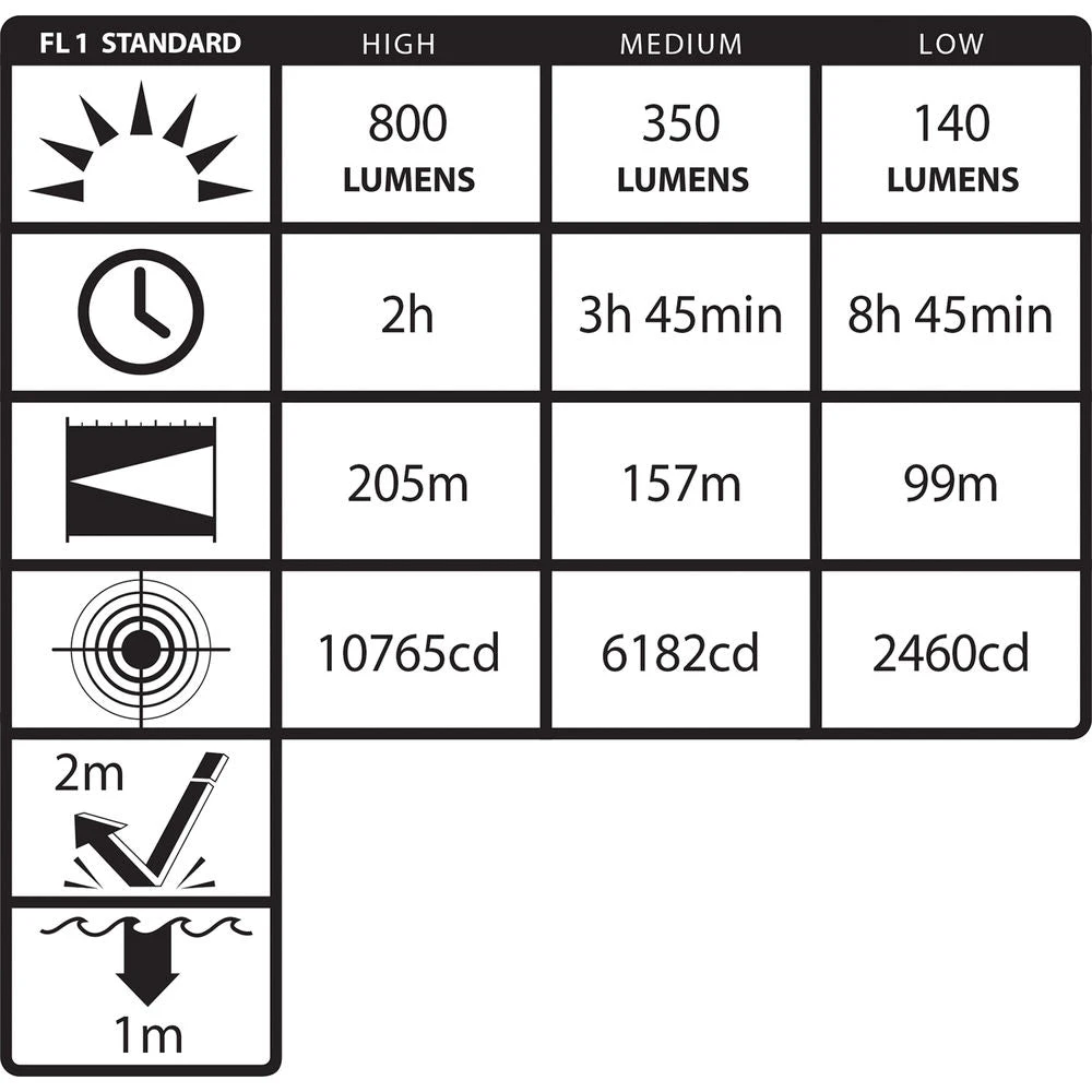 | Lumen Output | Low: 140 Lumens Medium: 350 Lumens High: 800 Lumens |
