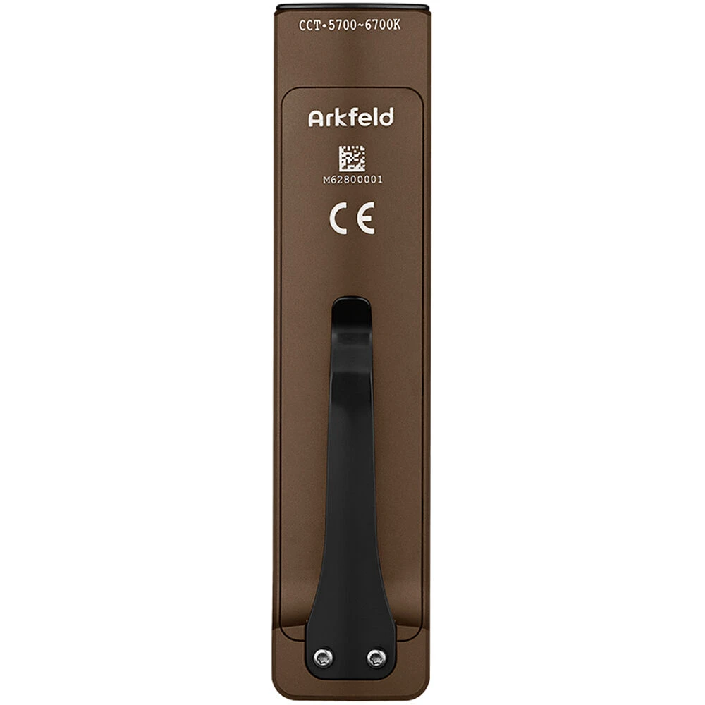 Olight‘s compact and powerful desert tan Arkfeld Flat Flashlight is two tools in one�a flashlight with a long runtime and a green laser pointer. It features five brightness levels from 1 to 1000 lumens of cool white light (5700-6700K), an effective beam distance of 331′, and a maximum runtime of eight days. Its intuitive interface allows you to easily control the flashlight with a center summary and selector that turn the light on and off and adjust the brightness and modes. The Arkfeld’s integrated magnetic end design conveniently attaches to metal surfaces for hands-free use. A 1050mAh rechargeable lithium polymer battery recharges with an included magnetic USB cable.