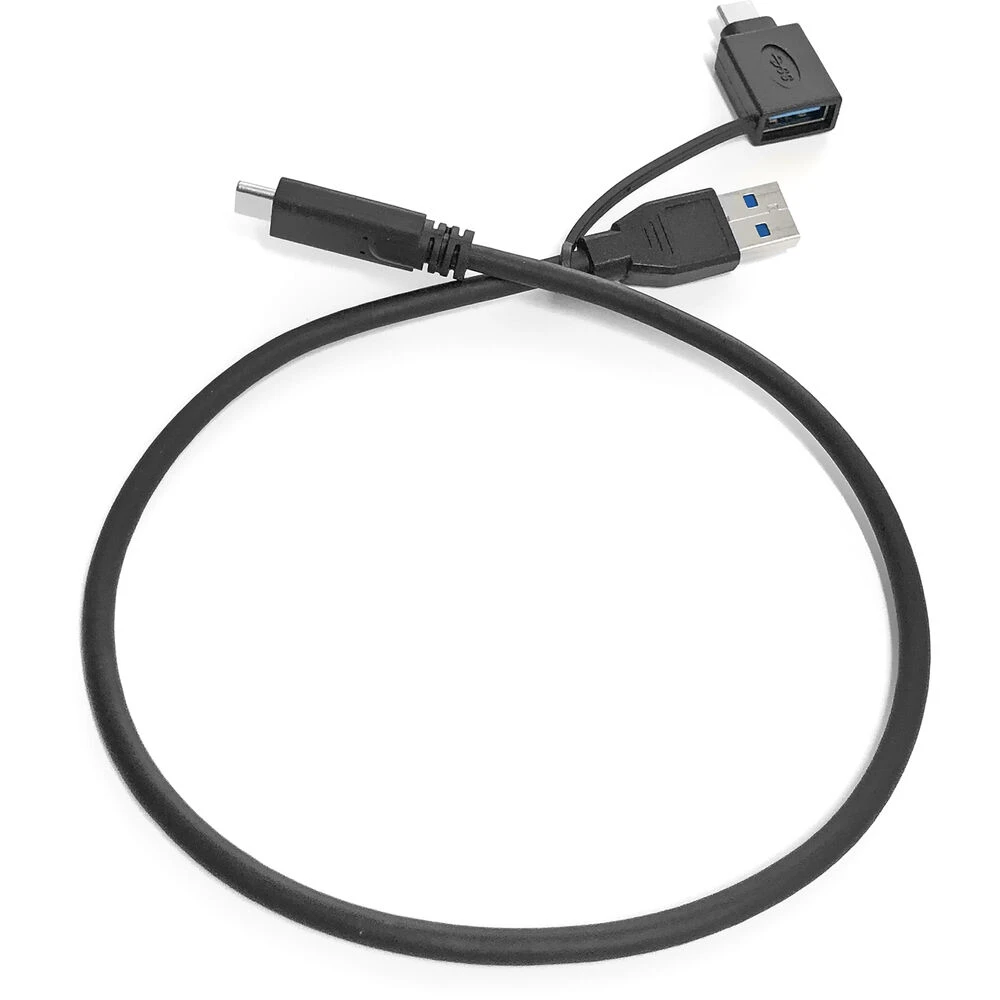 Enjoy fast, reliable data transfers and high versatility by connecting your compatible external storage drive and other peripherals to your computer with the 3.3′ Oyen Digital USB 3.2 Gen 2 Type-C Male to Type-A Male Braided Cable. Simply connect your compatible devices using the USB Type-C and Type-A male connectors to transfer up to 10 Gb/s. A USB Type-A female to Type-C male adapter comes attached to the cable, giving you the flexibility to connect a variety of devices without having to carry multiple cables. This cable also features a durable, yet flexible braided jacket that helps to minimize EMF signal interference.