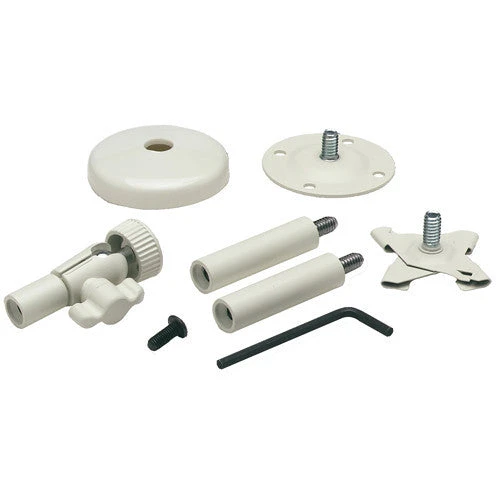 The cream Deluxe Micro Mount from Panavise is a customizable mounting kit that offers 12 options for mounting CCTV cameras. A 2″ round base with four holes on a bolt circle for solid surface mounting is included, along with a T-bar clip for drop ceiling rails. Two aluminum shafts allow you to vary the mount’s length, making it possible to have a mount that is between 2-6″ long. Camera positioning is simple thanks to the mount’s ability to tilt up to 190° and rotate 360°, while a lock-ring securely holds the camera in place. In addition, the mount features a 1/4″-20 thread, making it compatible with most cameras.