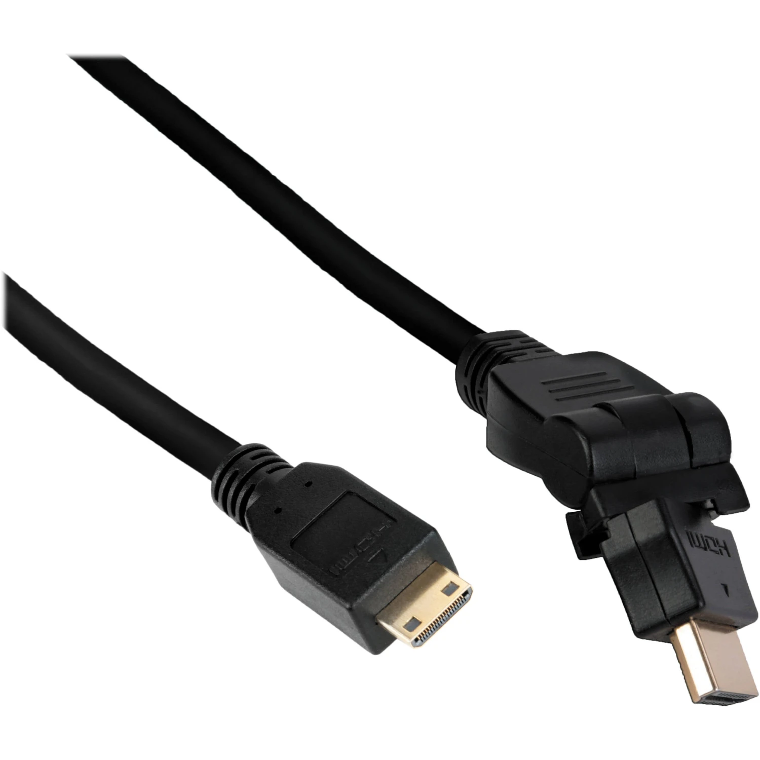 - Swiveling gold-plated HDMI Type A male connector to fixed gold-plated HDMI Type C male connector
