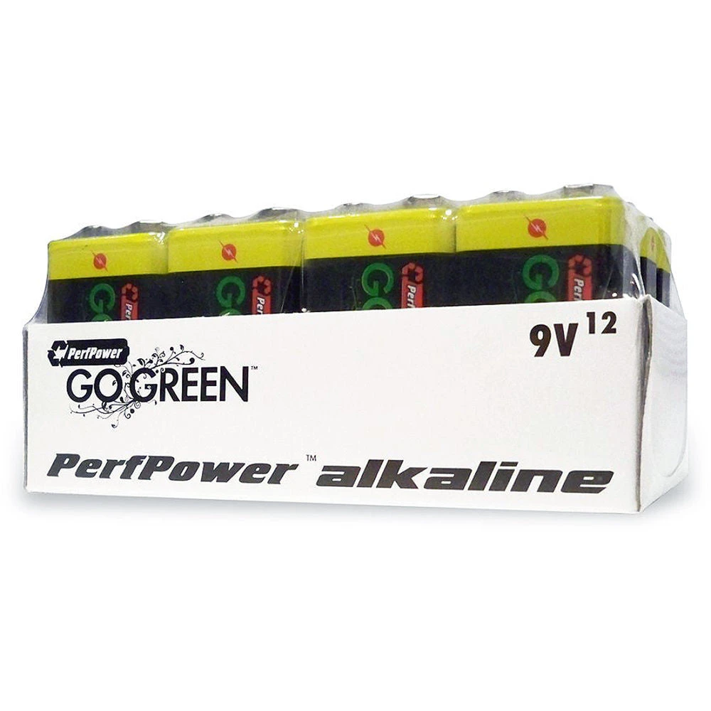 Run various electronics while remaining environmentally conscious with this 12-pack of PerfPower Go Green 9V Alkaline Batteries . These cells are made of recycled materials and contain no lead, mercury, or cadmium. Additionally, they have a shelf life of 5 years.