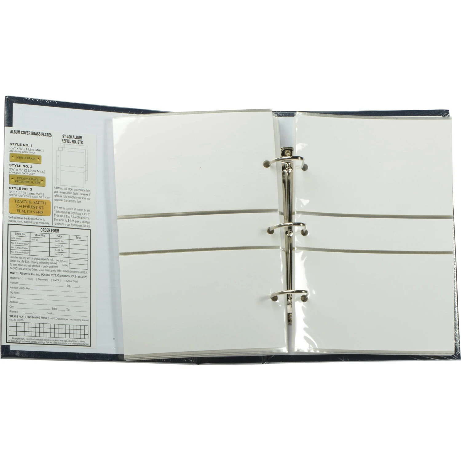 The clear, side-loading pages protect your photos from dust and fingerprints. The white paper background on each page enhances the presentation of your photographs. The refillable 3-ring binding features 1.5″ D-rings spaced 2.5″ apart that enable the open pages to lay flat for quick loading and optimal viewing. There is a memo area between each photo. The album is acid-free for long-term archival photo storage.
