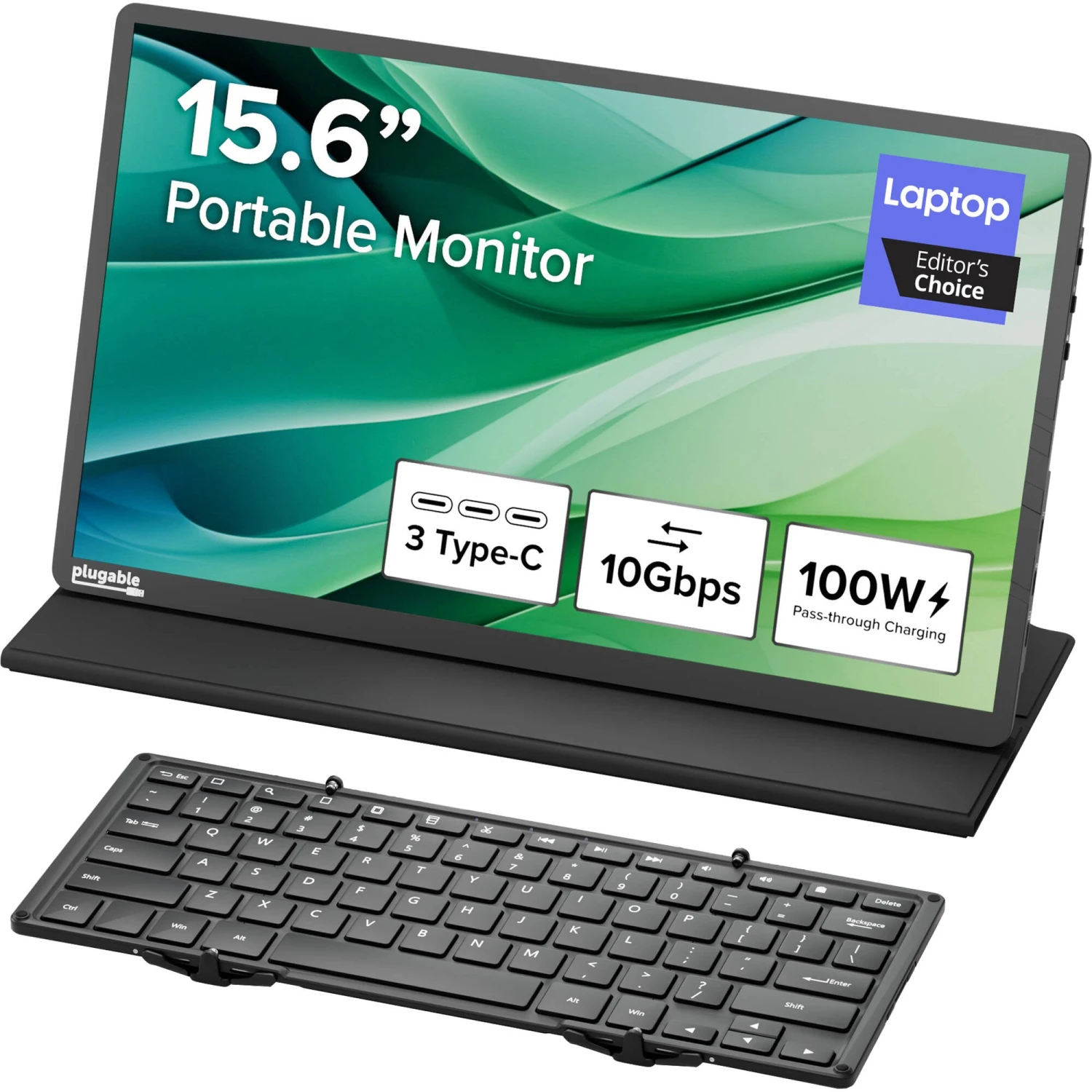 The 15.6″ USB-C Portable Monitor with Full-Size Folding Bluetooth Keyboard and Case from Plugable is a manufacturer’s bundle that includes their 15.6″ USB-C Portable Monitor and Full-Size Folding Bluetooth Keyboard with Case. These items will allow users to be productive almost anywhere, with a portable monitor for dual-screen productivity and a foldable keyboard that is compact and comfortable.