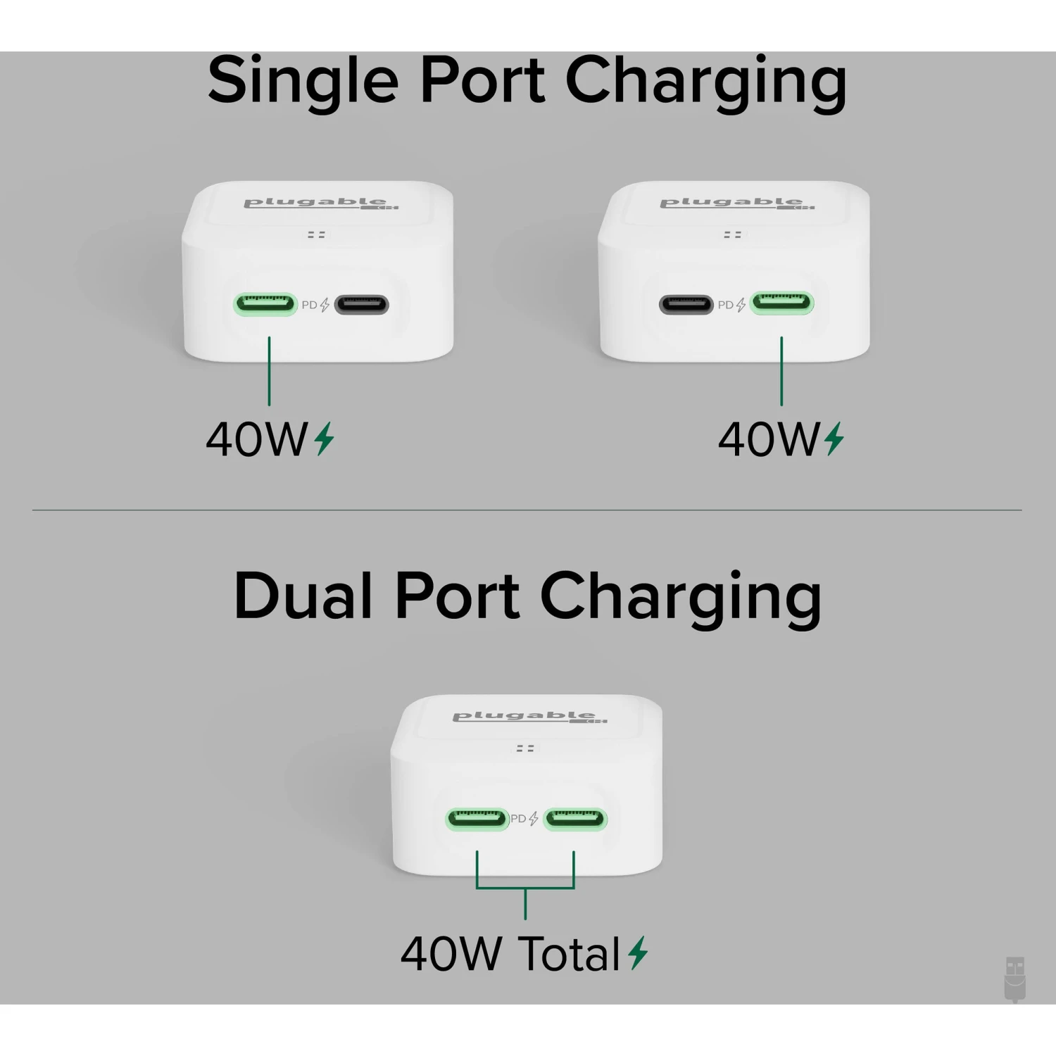 - Plugable 40W Dual USB-C Wall Charger (White)