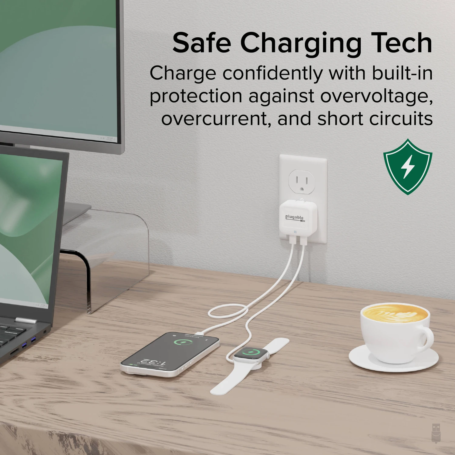 Fast-charge your mobile devices with the space-saving 40W Dual USB-C Wall Charger from Plugable. This white-colored charger features a low-profile design that only comes out 0.9″ from the outlet, making it ideal for use behind furniture at home. Once plugged in, you get two USB-C ports for charging up to two devices simultaneously. Each port can output up to 40W individually, or both ports can share 40W when used together. Thanks to built-in overvoltage, overcurrent, and short circuit protection, your connected devices will receive that power safely.