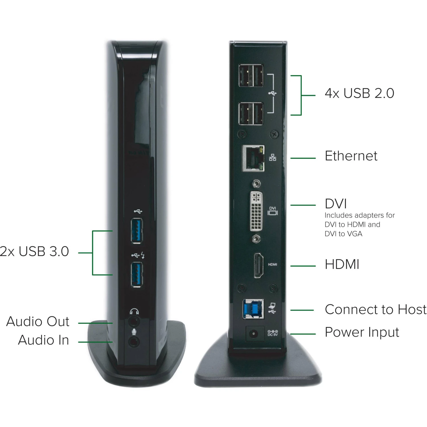 1 x HDMI Port1 x DVI Port with VGA Adapter2 x USB 3.1 Gen 1 Type-A Ports4 x USB 2.0 PortsIntroduction to Plugable Technologies