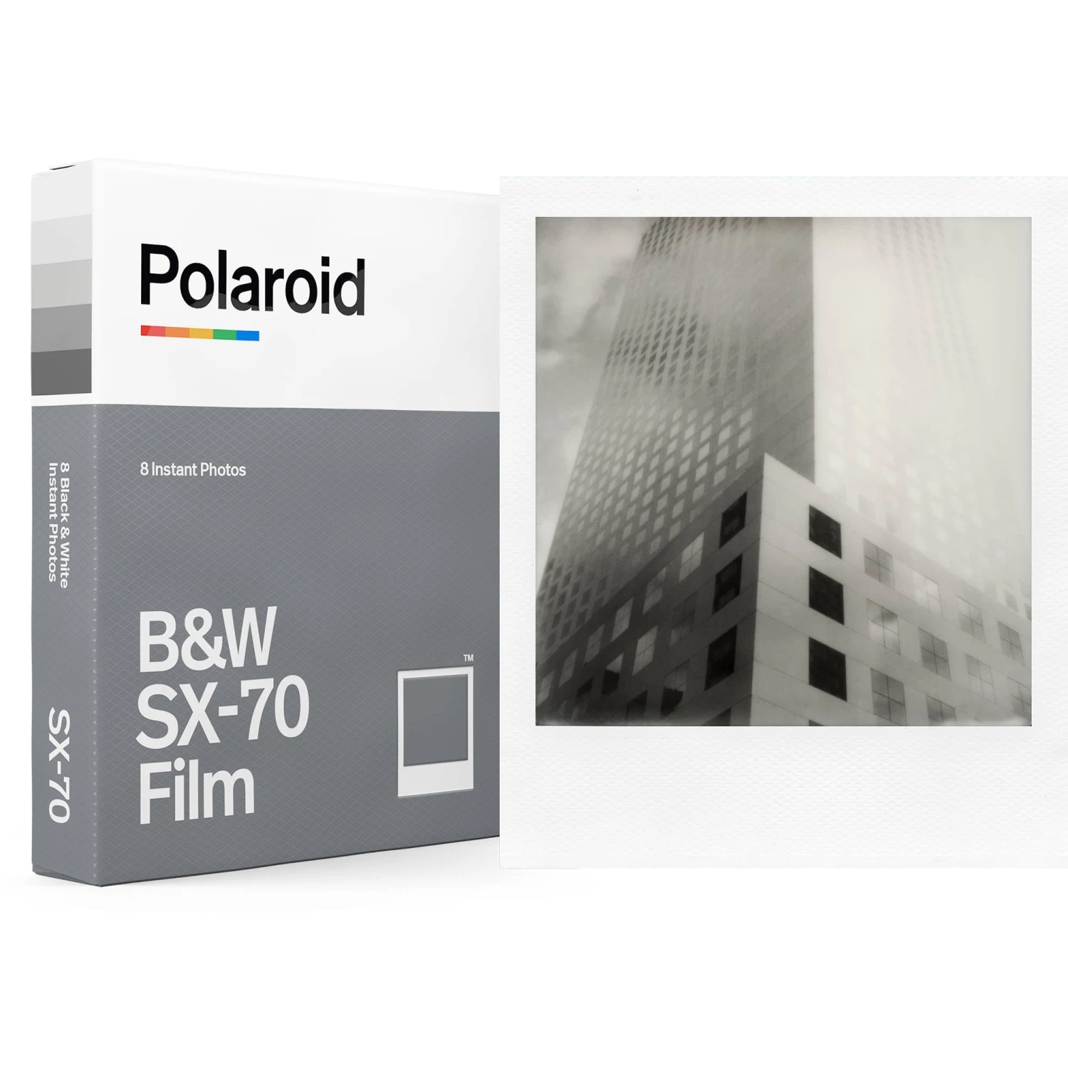 This pack of Black & White SX-70 Instant Film from Polaroid contains eight sheets of film for use with Polaroid SX-70-series cameras. Producing monochrome images with a long tonal scale, dark blacks, and bright whites, this ISO 160 film offers a classic instant film look with its glossy 3.1 x 3.1″ image area and traditional white borders. Each shot develops in 5-10 minutes after exposure, and the film should be stored in a cool, refrigerated, but not frozen, place before use.
