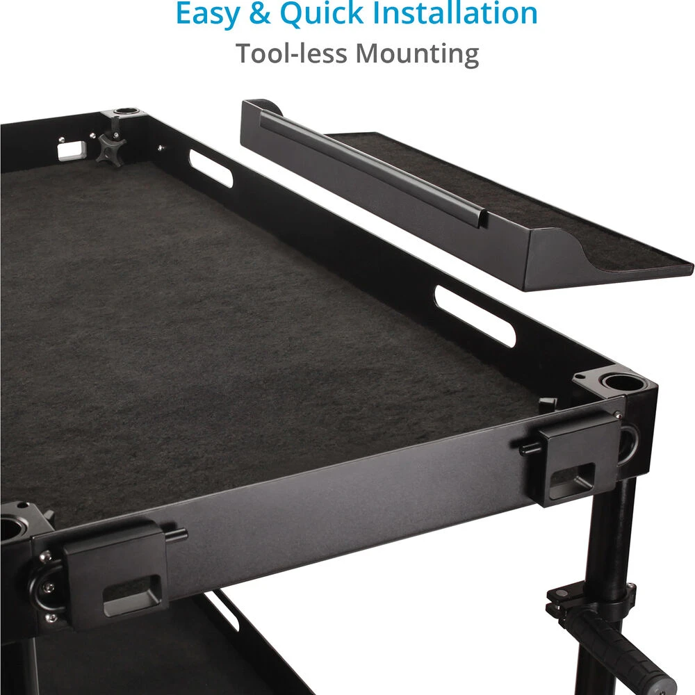 The Proaim Computer Keyboard Tray is an ideal way to increase workspace and keep your keyboard & mouse accessible on your Victor, Victor V1.1, Bowado, or Bowado Pro camera equipment cart. The tray is constructed with high-grade aluminum for life-long durability. A mat and raised lip around the edges prevents items from sliding off.