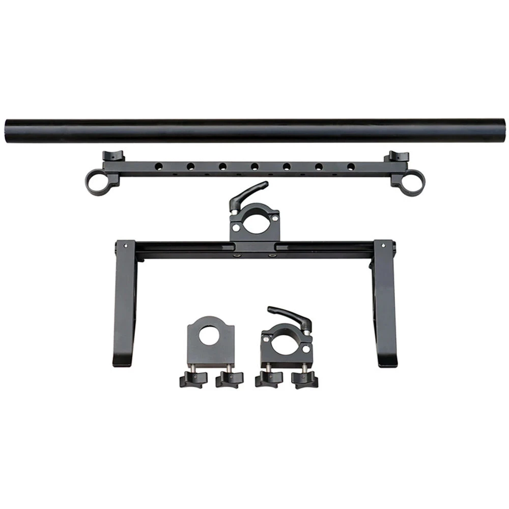 The Dual Tripod Holder attaches to 1.5″/38mm masts of supporting equipment carts, such as the Proaim Atlas V2, Victor, and Victor 1.1. It allows you to place two full-size tripods on it when they aren’t being used. It supports up to 110 lb in total. The two components that hold the tripods can also be squeezed closer together to hold one tripod by means of a VCT or similar plate.