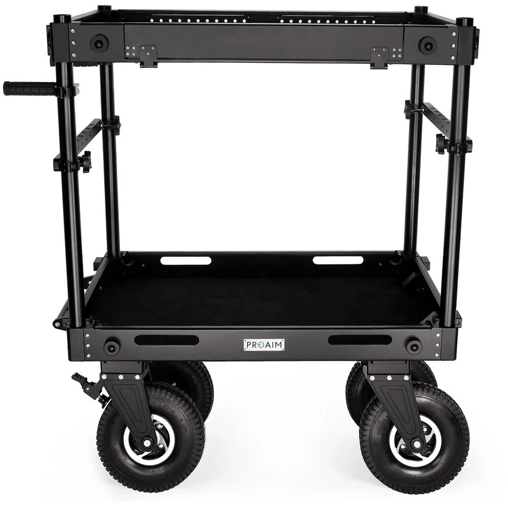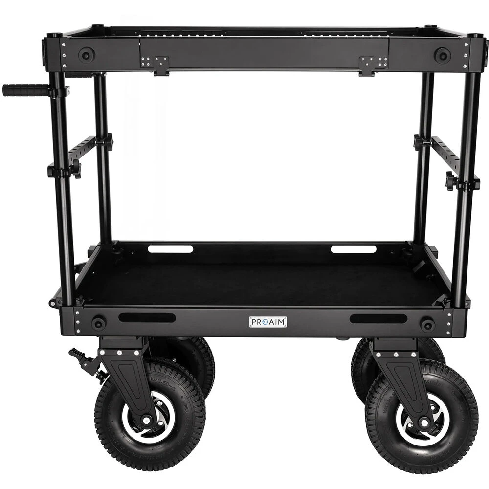 The Victor Pro 36″ Video Production Camera Cart from Proaim is designed for the convenience of professional video makers, filmmakers, and photographers. Aluminum and stainless steel construction ensure stability even when loaded to the maximum payload of 1100 pounds. Choose from over 50 different accessories to transform it into a DIT cart, a sound cart, a lighting cart, an equipment dolly, or even a portable workstation. It’s easy to customize this cart into precisely the solution you need.