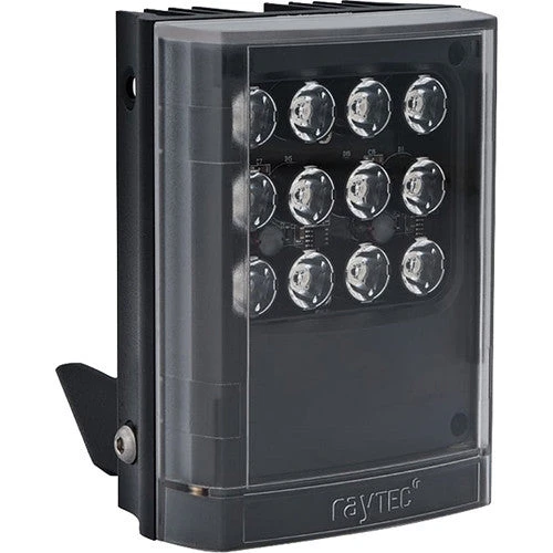 The black VARIO2 i4 Medium Range Infrared Illuminator from Raytec uses PLATINUM Elite SMT LED technology to deliver power and achieve operating distances of up to 472′. It features an interchangeable lens system with Hot-spot Reduction Technology to deliver even illumination. With the optional hand-held remote control, VARIO2 makes installation and commissioning quick and easy.