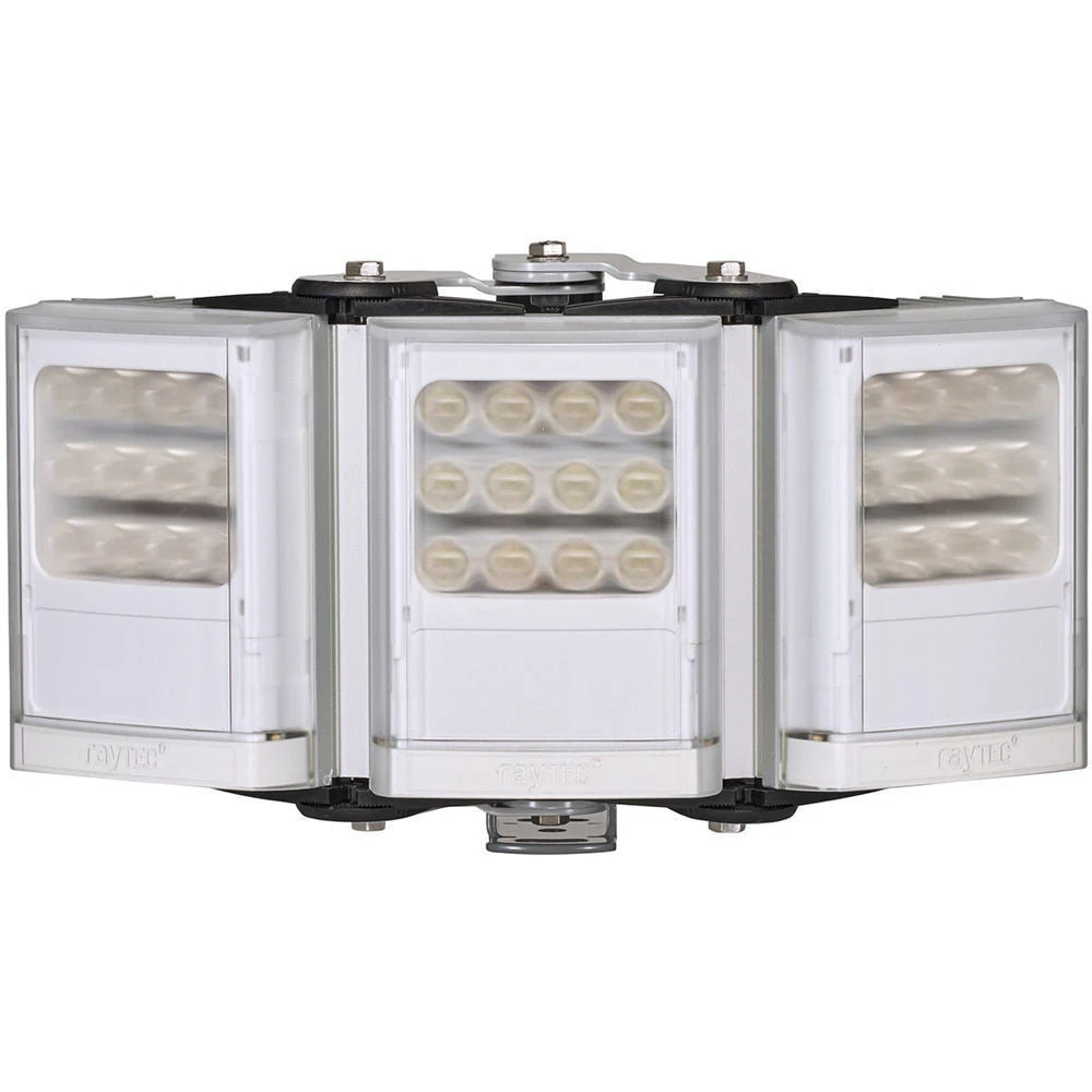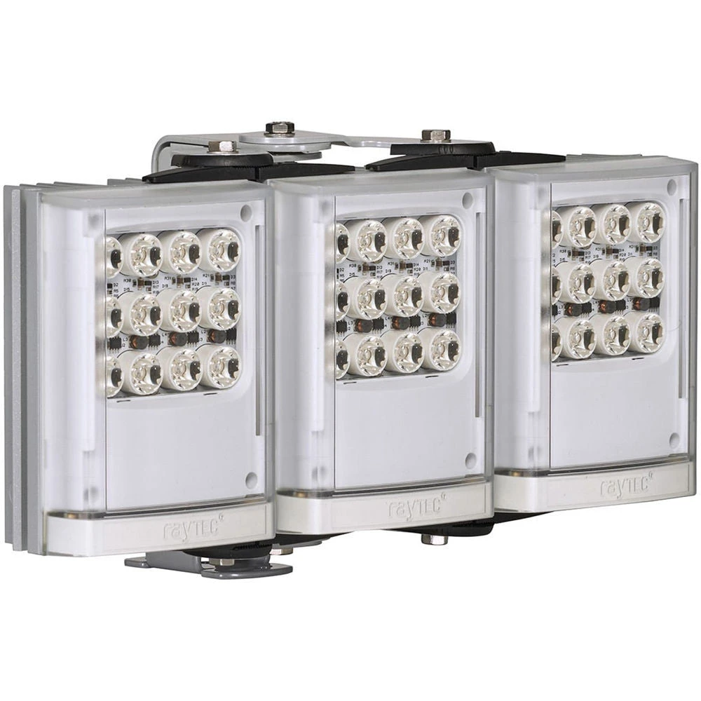 The silver VARIO2 Medium-Range Triple-Panel White Light Illuminator from Raytec helps improve the performance of any video surveillance system in low light conditions. It uses PLATINUM Elite SMT LED technology to deliver more power from a smaller platform. It can cast light to a distance of 623′.