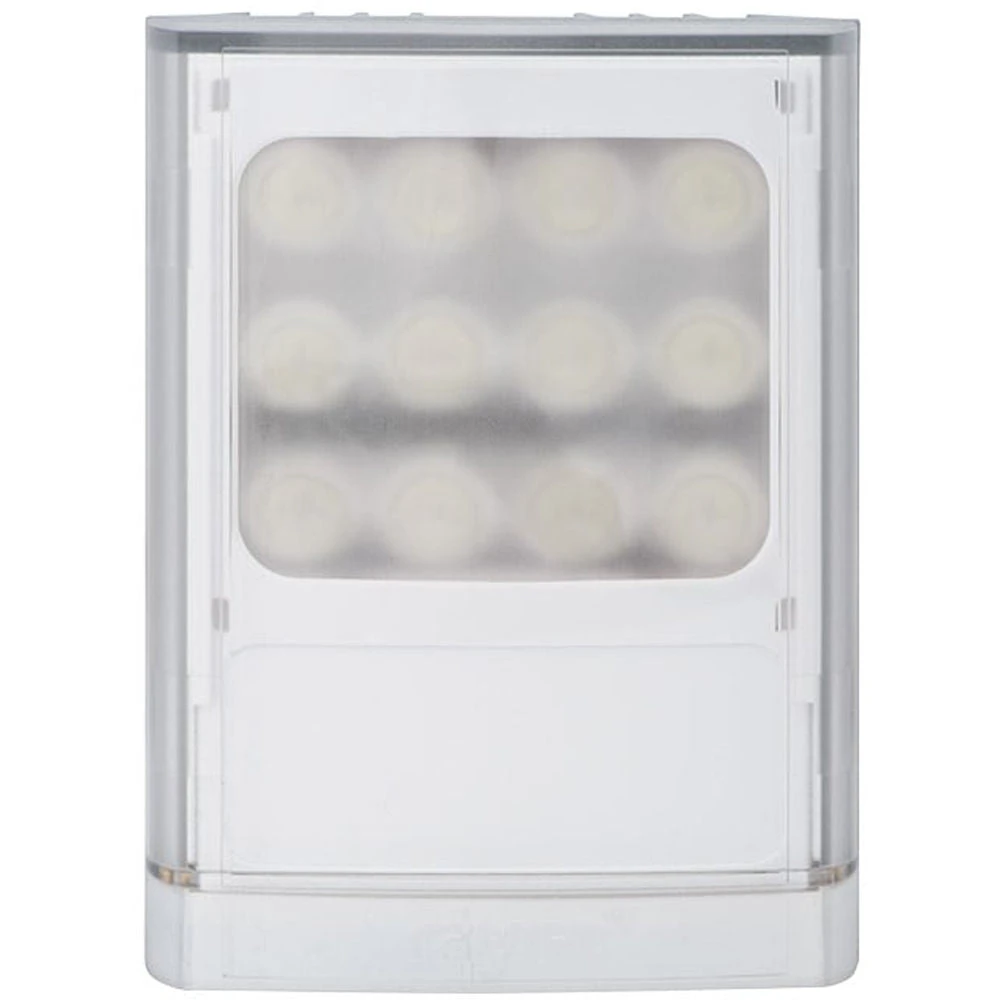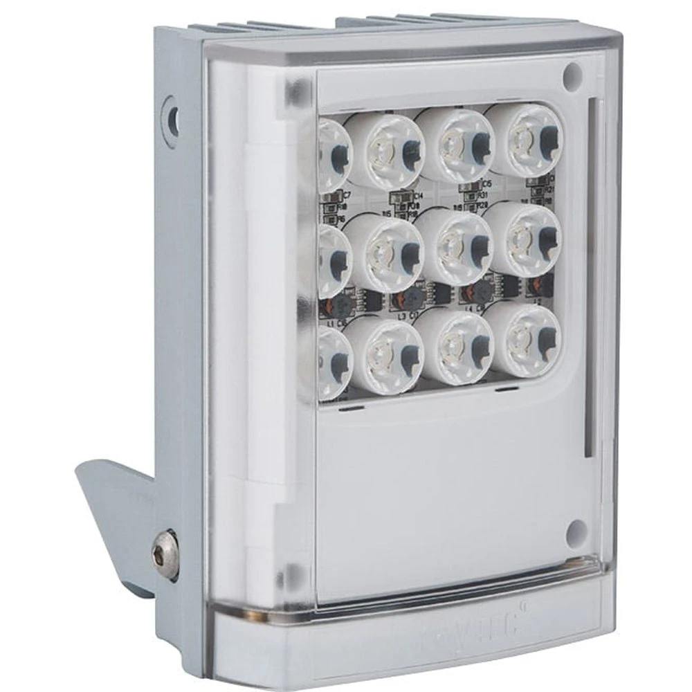The silver VAR2-W4-1 VARIO2 w4 Medium-Range White Light Illuminator from Raytec uses PLATINUM Elite SMT LED technology to deliver light to distances up to 361′. It features an interchangeable lens system with Hot-spot Reduction Technology to deliver even illumination. With an optional handheld remote control, the VARIO2 makes installation and commissioning quick and easy.