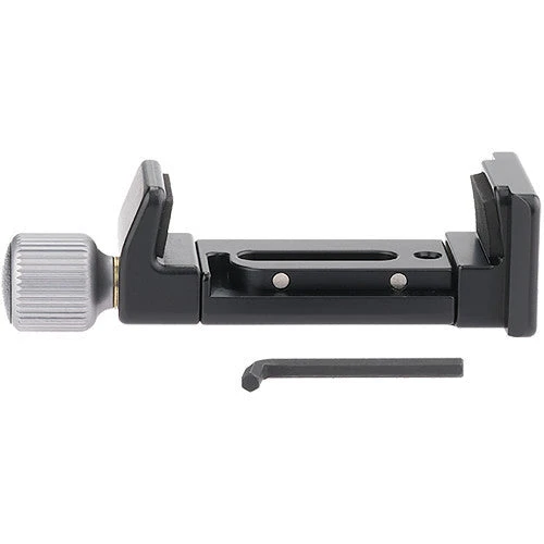 Securely mount your smartphone with the Mobile Phone Clamp with Dovetail Jaw from Really Right Stuff . This mount fits devices 2.2 to 3.4″ wide and has two 1/4″-20 standard threaded holes for mounting on tripods, monopods, and more. The mount adjusts using a knob and a custom hex key that is secured within the clamp with a pair of rare earth magnets while a knob locks the phone in place. Angled jaws hold your device in place and are lined with firm rubber. The 1.5 quick release dovetail jaw lets you directly mount your device to compatible ball heads and other devices.