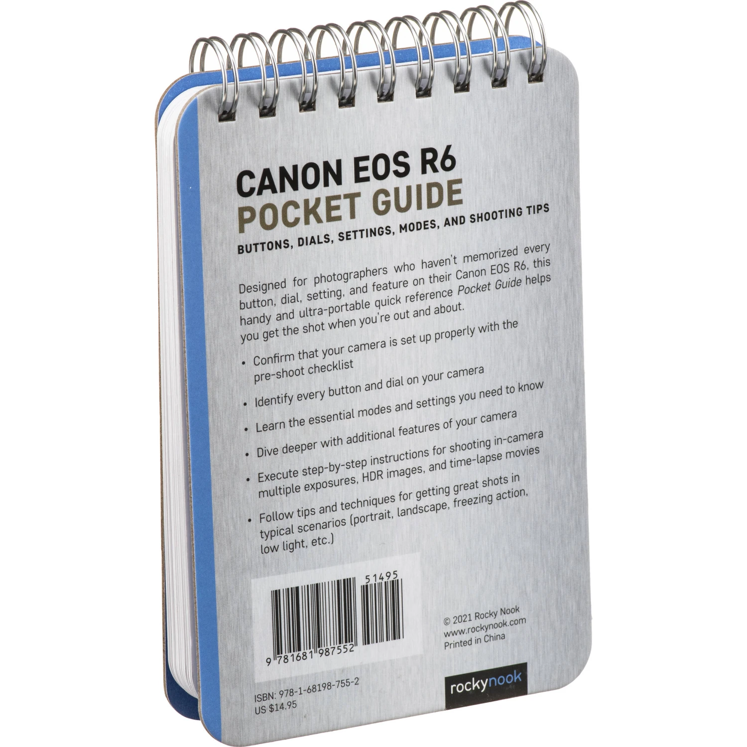 The Canon EOS R6: Pocket Guide from Rocky Nook is a quick-and-easy guide to help you get the most out of your camera. Designed for photographers who haven’t memorized every summary, dial, setting, and feature on their EOS R6, this portable guide helps you get the shot when you’re out and about using your camera.