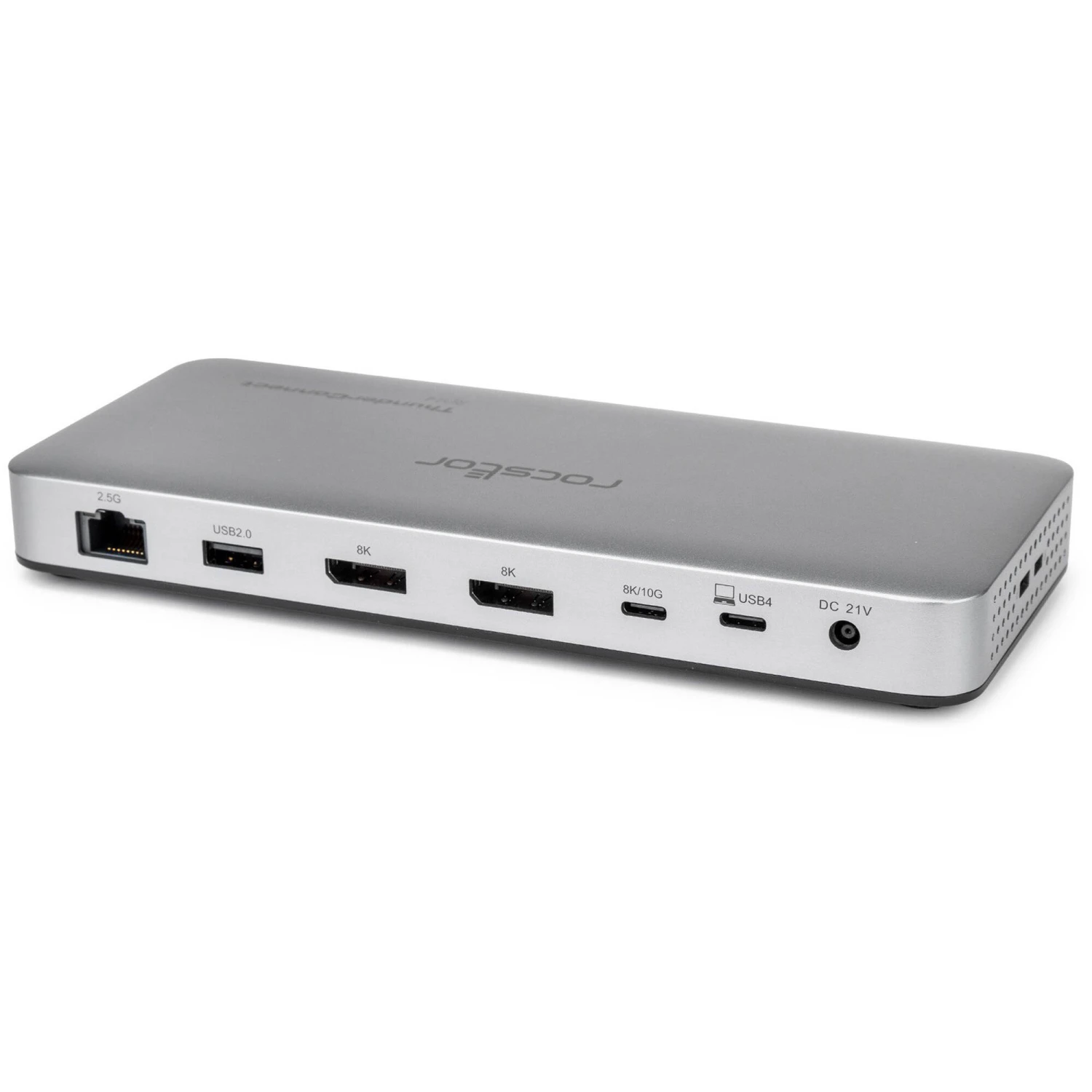 Enhance your professional workflow with the RD14 USB4 Portable Dock from Rocstor. In addition to transferring up to 40 Gb/s with USB4 compatible devices, this portable dock allows you to two UHD 8K 7680 x 4320 resolution, 30 Hz displays simultaneously for efficient multitasking.