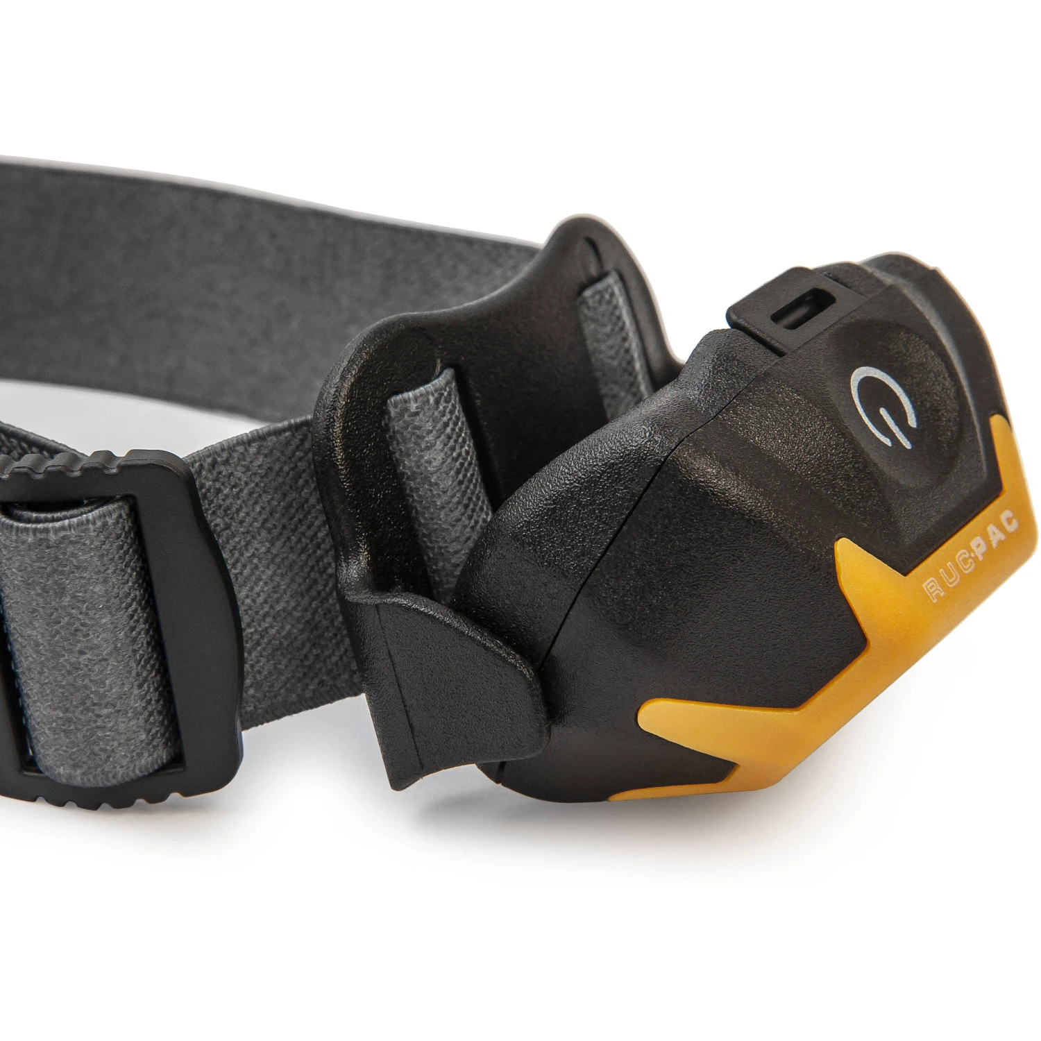 The white chip-on-board LED of the RucPac Professional Halo Headlamp casts a bright but soft light in a wide beam, suited to a wide range of professional applications�not to mention outdoor recreation, power outages, and around-the-house use. This compact lamp offers high and low white-light settings with a peak output of 200 lumens, as well as a red-light setting that preserves night-acclimated vision and a flashing red mode for signaling. Three AAA batteries will power the lamp for 6 to 24 hours, depending on brightness levels used. And at just 1.8 ounces, the Professional Halo Headlamp is light enough to wear for hours with no neck strain.