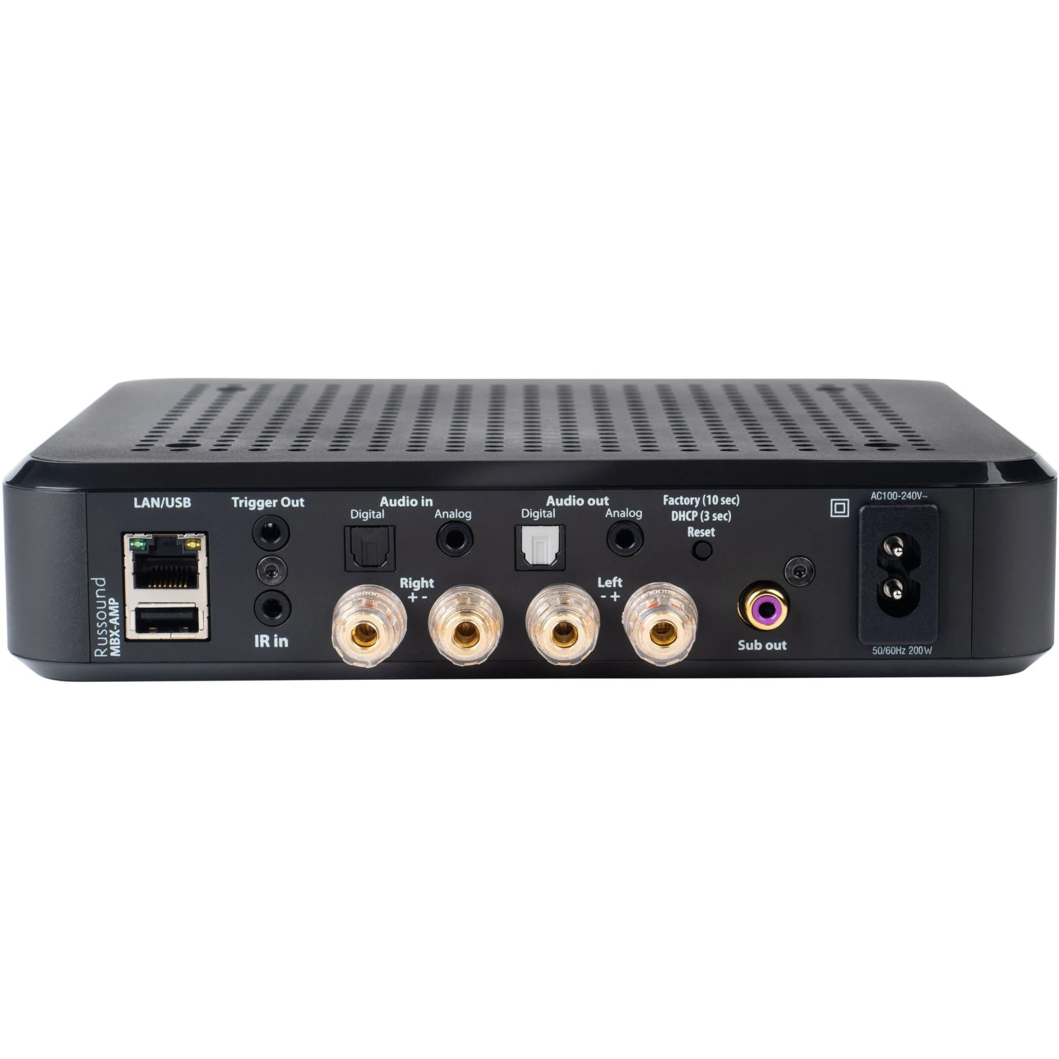 The MBX-AMP is designed to be an installer-friendly, high-performance streaming amplifier that can be added to any audio system. When connected to your network via LAN or Wi-Fi, the MBX-AMP allows for expansion to up to 32 streaming rooms of audio in a single installation with any combination of other MBX-Series streaming products from Russound. In addition to network and streaming capability, the MBX-AMP includes digital optical and 3.5mm analog audio inputs and outputs for easy integration with other audio systems and components.
