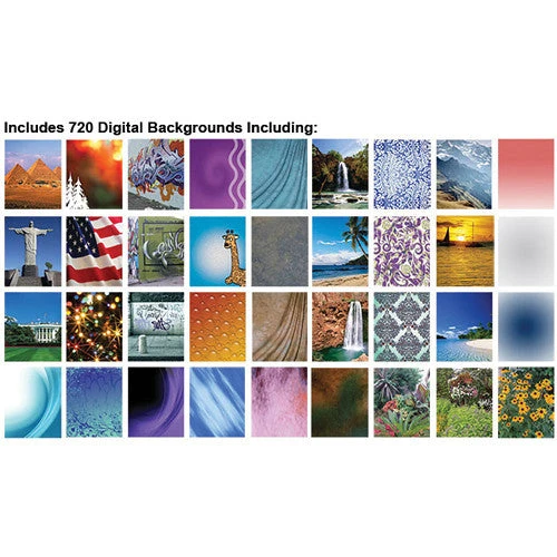 The Green Screen Software Kit from Savage includes the Green Screen Wizard Lite Software that can be used with any green screen backdrop. It permits you to drop a photograph taken against a green screen cloth into a locale or landmark from anywhere around the world. The kit features 720 digital backgrounds and has a wide choice of themed locales. The software is PC and Mac compatible, intuitive, and easy-to-use.