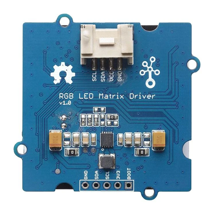 Grove – RGB LED Matrix w/Driver is a 8×8 RGB LED Matrix for simple image display, 64 pixel leds and 255 colours for each pixel means almost infinite possibilities.