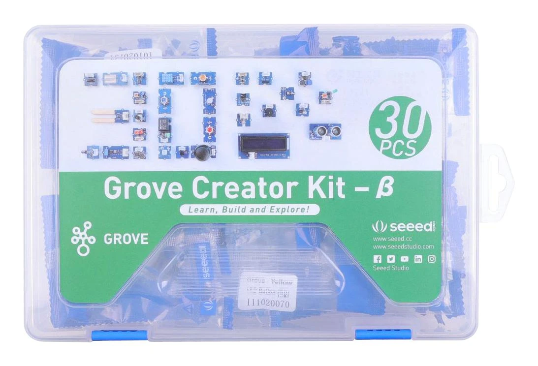Grove Creator Kit Beta contains 30 different functional Grove modules, including basic components and enhanced sensors for additional functions for electronic beginners. With the cost-effective price and the full tutorial, it is a great choice for intermediate Arduino and Raspberry Pi developers. The kit contains 2 actuators, 2 wireless modules, 9 analogue inputs, 1 display, 5 LEDs, and 11 sensors, all of which are supported by both Arduino and Raspberry Pi controllers. Seeed Studio also launched an Arduino controller as Wio Terminal and a Raspberry Pi controller as reTerminal, combing them and modules skilfully, you will find a new world about edge AI (embedded Artificial Intelligence) and IoT (Internet of Things).