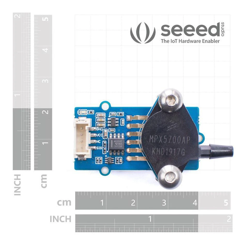 Grove – Integrated Pressure Sensor Kit (MPX5700AP) is made for measuring pressure in the range of 15Kpa to 700Kpa, which is perfectly suitable for making your own Arduino air pressure measurement system.
