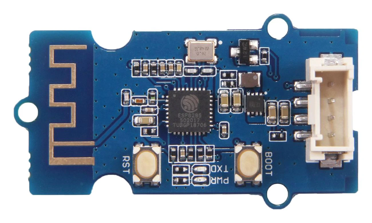 Grove – UART Wi-Fi V2.0(ESP8285) is a serial transceiver module featuring the ubiquitous ESP8285 IoT SoC. With an integrated TCP/IP protocol stack, this module lets your microcontroller interact with Wi-Fi networks with only a few lines of code. Each ESP8266 module comes pre-programmed with an AT command set firmware, meaning you can send simple text commands to control the device. The SoC features integrated WEP, WPA/WPA2, TKIP, AES, and WAPI engines, can act as an access point with DHCP, can join existing Wi-Fi networks, and has configurable MAC and IP addresses.