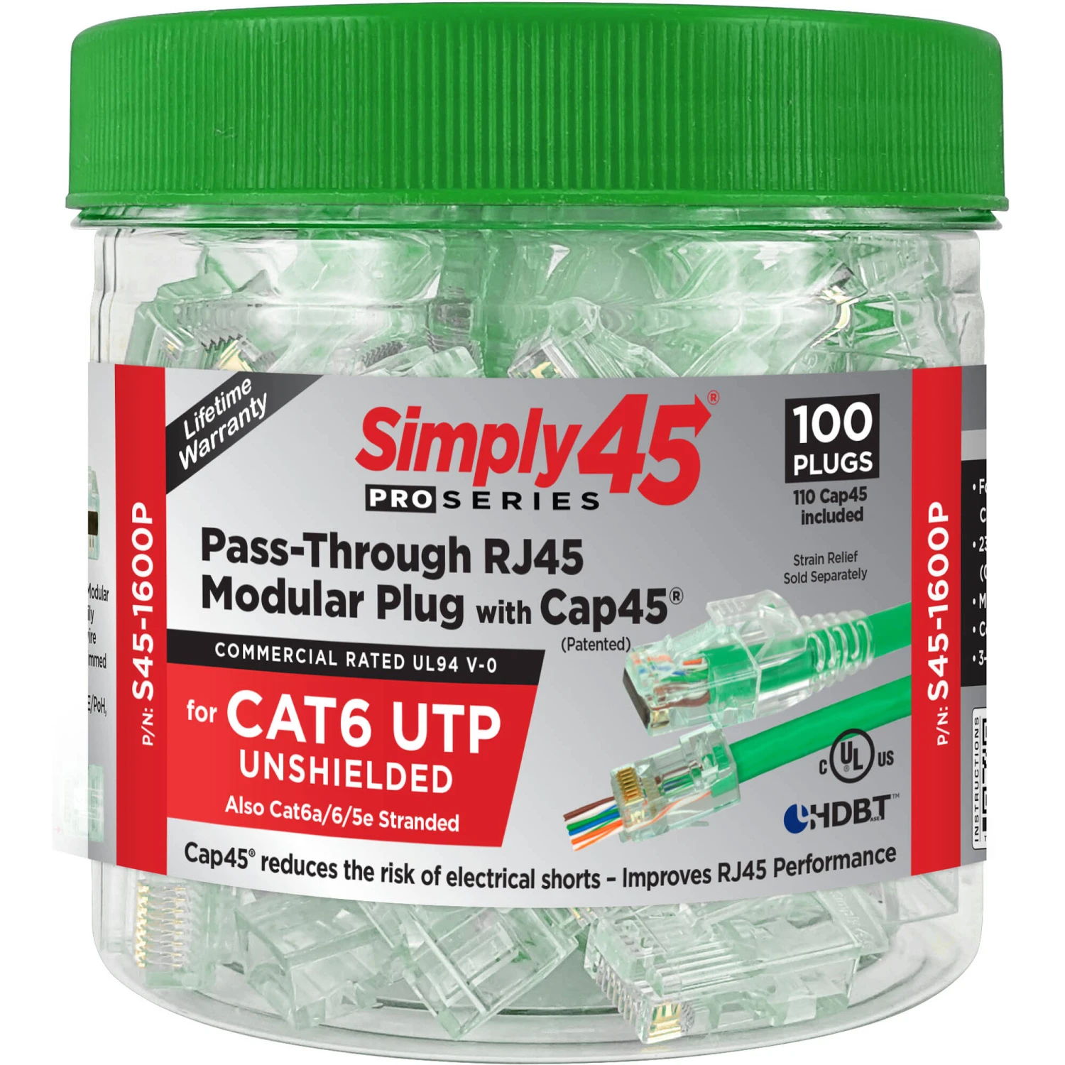 - Simply45 Cat 6 Unshielded RJ45 Pass-Through Modular Plug (100-Piece Jar)