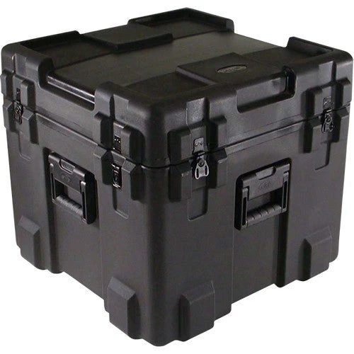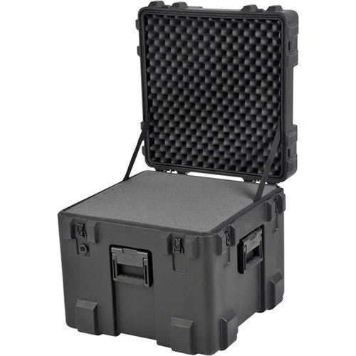 The SKB 3R2222-20B-C Mil-Standard Utility Case is designed to meet the most demanding military specifications. The case is roto-molded for strength and durability with an LLPDE shell for maximum impact resistance. It is water proof with solid stainless steel latches and hinges that will withstand the most demanding shipping conditions and they are padlock lockable. This case has a cube foam interior. Optional casters are available.